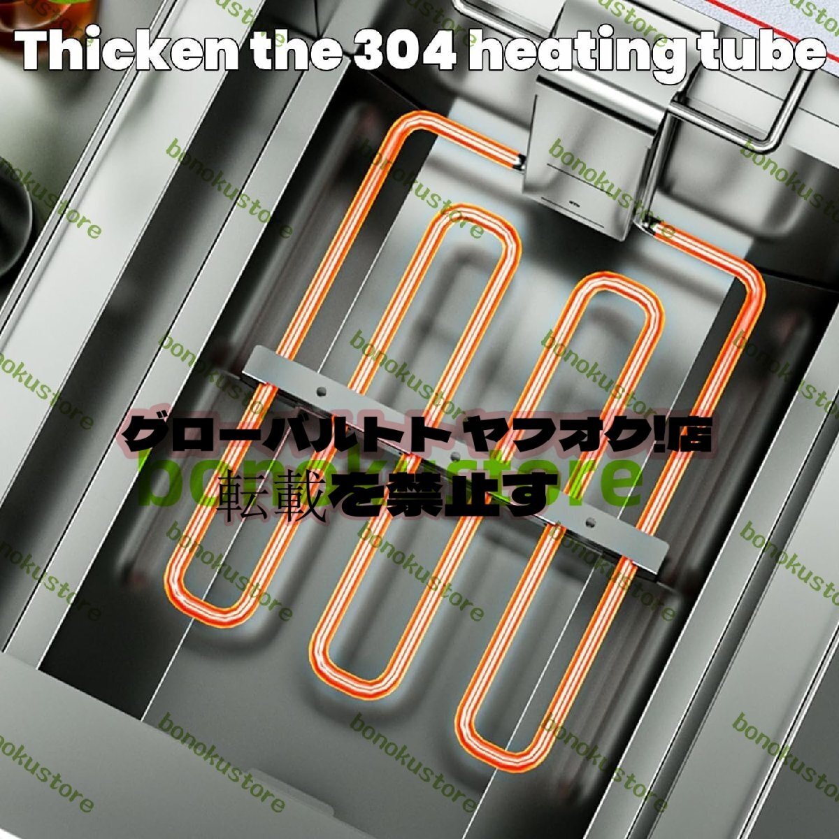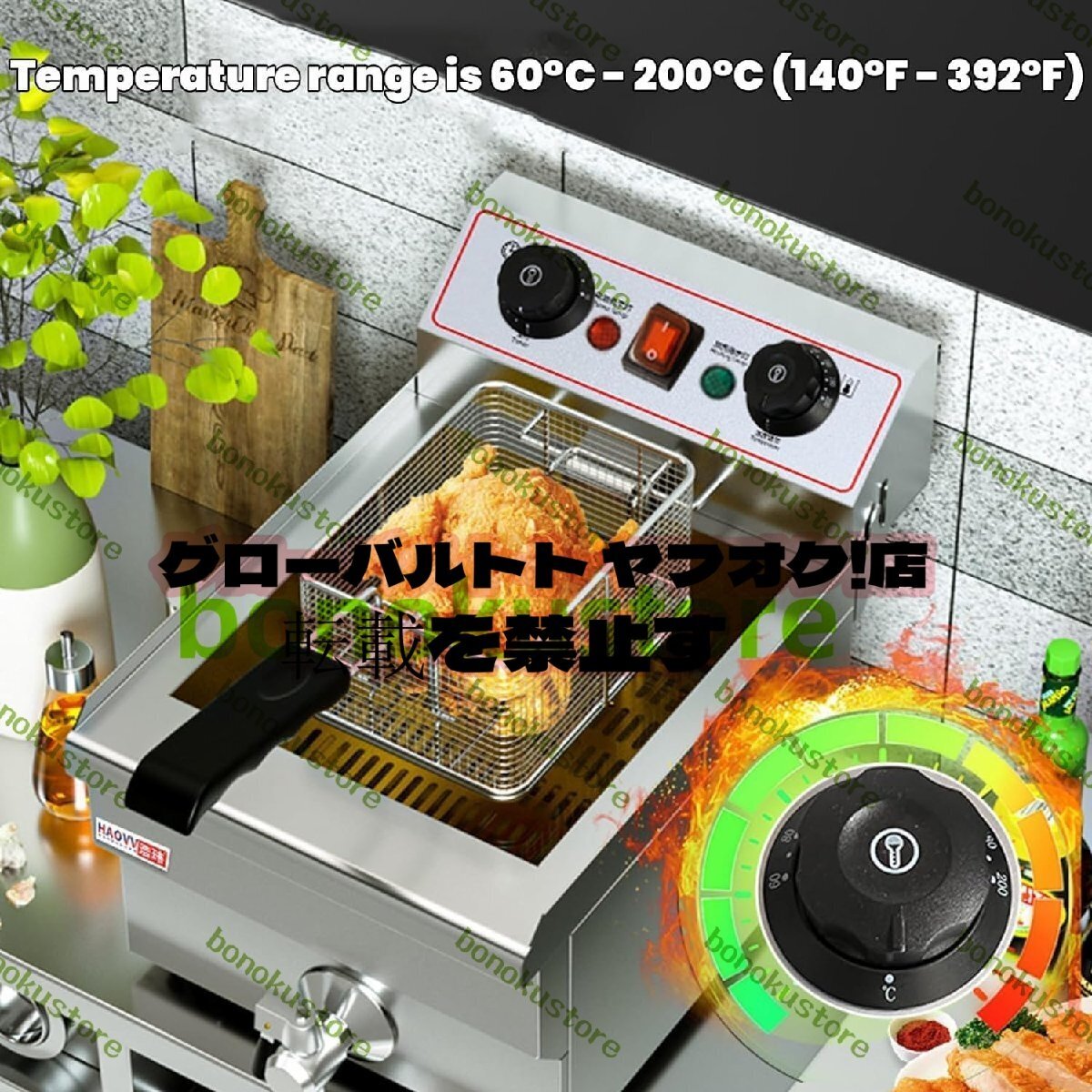 業務用ディープフライヤー、製品の説明特徴:ステンレススチール構造と加熱チューブにより長寿命を実現正確な温度設定のためのサーモスタット調理時間を制御するための60分タイマー食用油を排出するための頑丈な銅製蛇口スタイルの排水口沸騰した油の飛び散りを防ぐ蓋カバー安全な操作のためのプラスチックハンドル付きフライヤーバスケット簡単に掃除できる回転式フライヤーヘッド作業手順を監視するためのオン/オフスイッチとインジケータライト仕様:素材: ステンレススチール温度範囲: 140°F - 392°F (60°C - 200°C)パッケージに含まれるもの:ディープフライヤー x 1ステンレススチールバスケット x 1ステンレススチール蓋 x 1カバー注意:手作業による計測のため、1?2cmの誤差が生じる場合がありますので、ご了承ください。モニターの設定により、色の偏差が異なる場合があります。