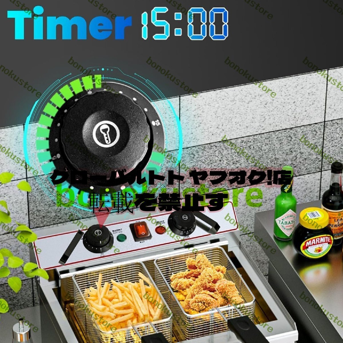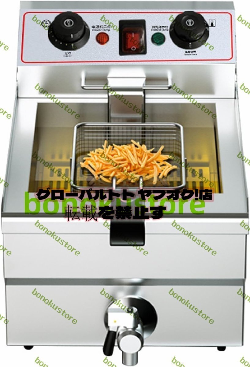 業務用ディープフライヤー、10L(10.5QT)容量の電気式ディープフライヤー、排水口、バスケット、蓋、タイマーコントローラー付き、カウンタートップステンレススチール、温度制御付きフライマシン、家庭用および業務用
