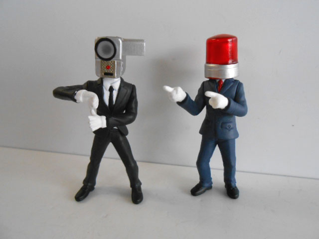 1.のぞき見る カメラ男 2.支える カメラ男 3.がんばれ カメラ男 4.発見 パトランプ男 5.指差し パトランプ男 ◇全国の映画館で映画本編前に上映される 映画盗撮防止キャンペーンCMに登場中のあの二人 |