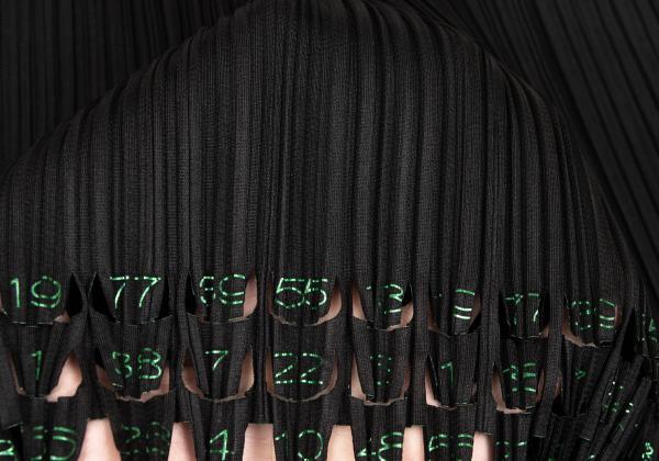 プリーツプリーズPLEATS PLEASE ナンバリングプリントカットワークミニスカート 黒3 |