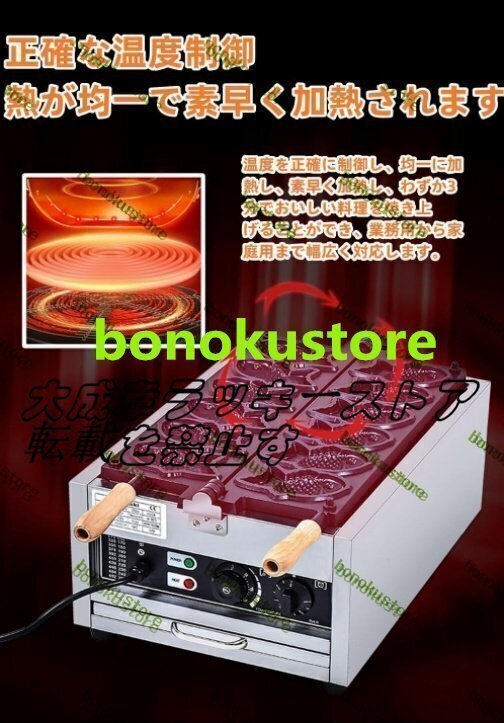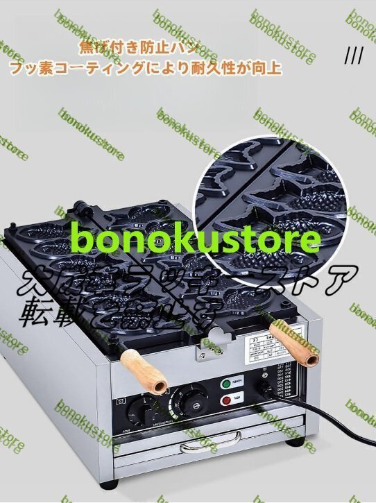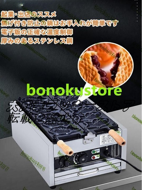 業務用電熱たい焼き機 6個、業務用電熱たい焼き焼き機、アイスクリームたい焼き焼き機、均一加熱三型焼き機(シルバー )