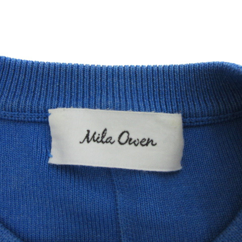 ミラオーウェン Mila Owen ニット カットソー ノースリーブ ラウンドネック 無地 リボン F 青 ブルー /YS17 レディース