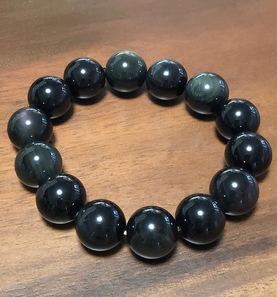 ●商品名:★3A級天然水晶/黒耀石双猫目(ブラックトルマリンダブルキャッツアイ)ブレスレット