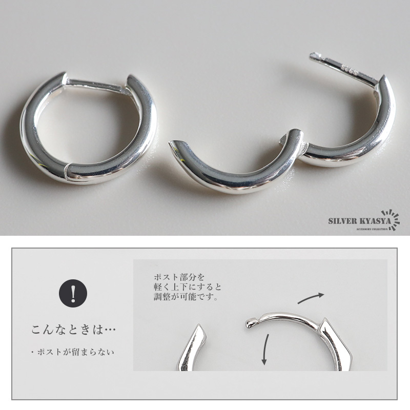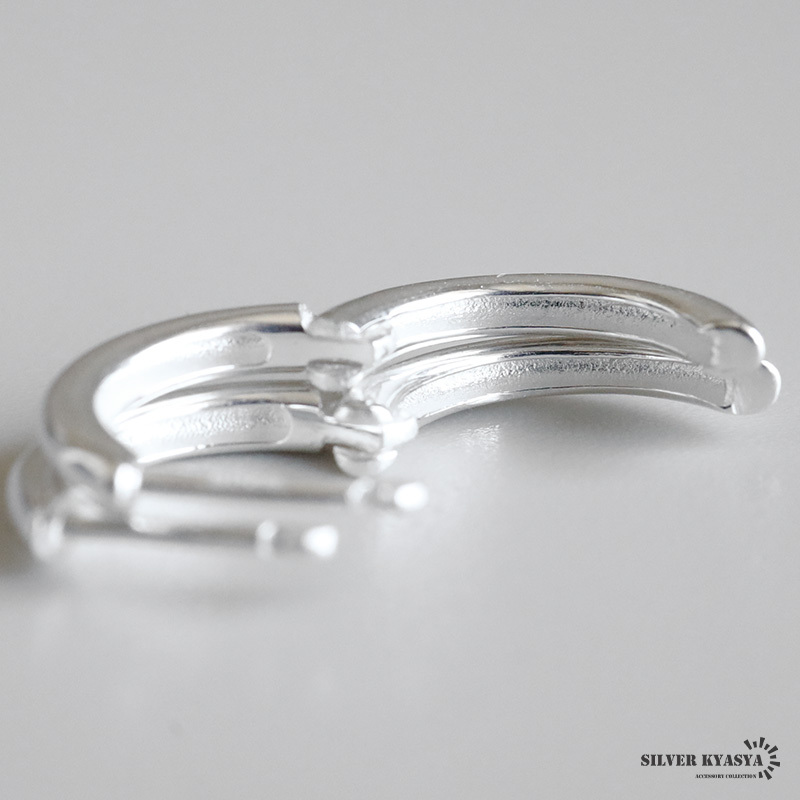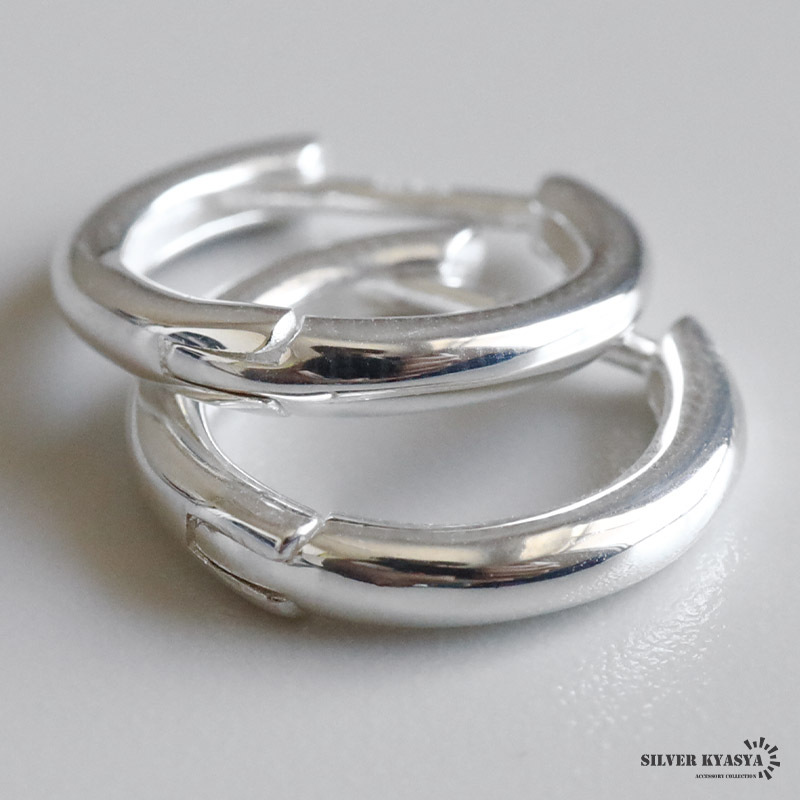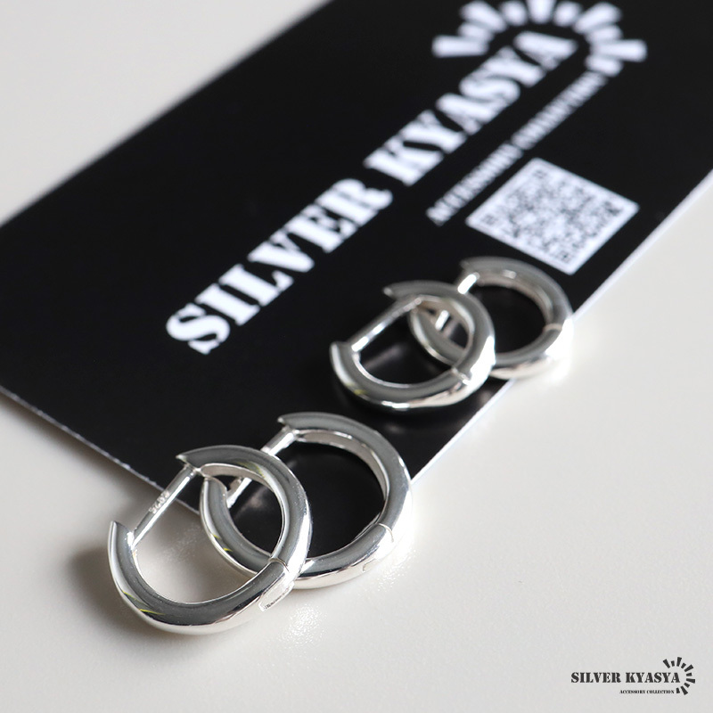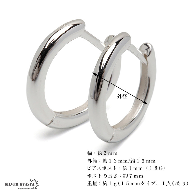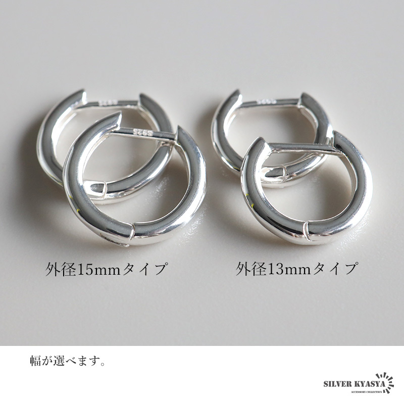 シルバー925の上品な輝きが魅力的なフープピアス。シンプルなフォルムで普段使いにぴったりのアイテムです。外径13mm/外径15mmの2サイズからお選びいただけます。