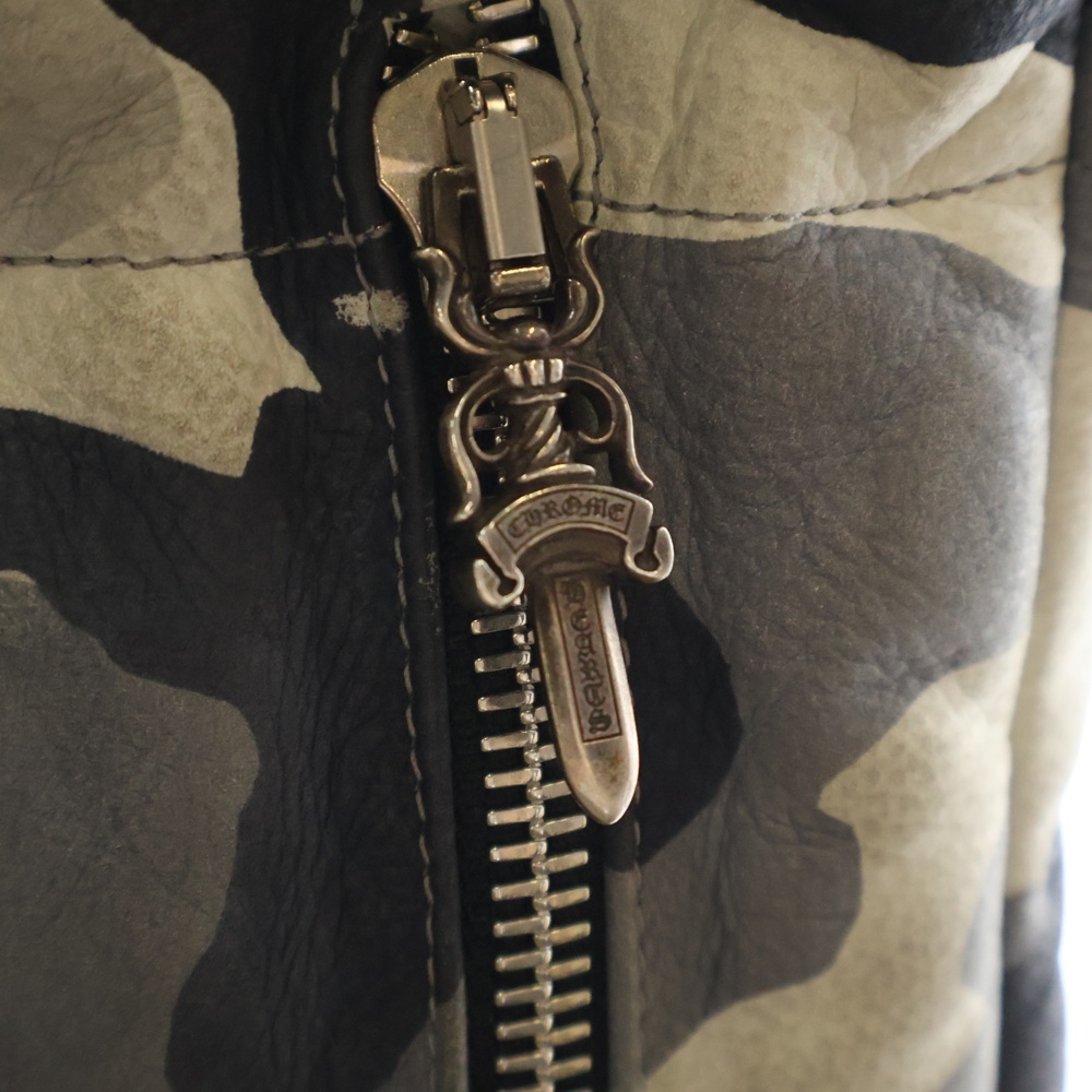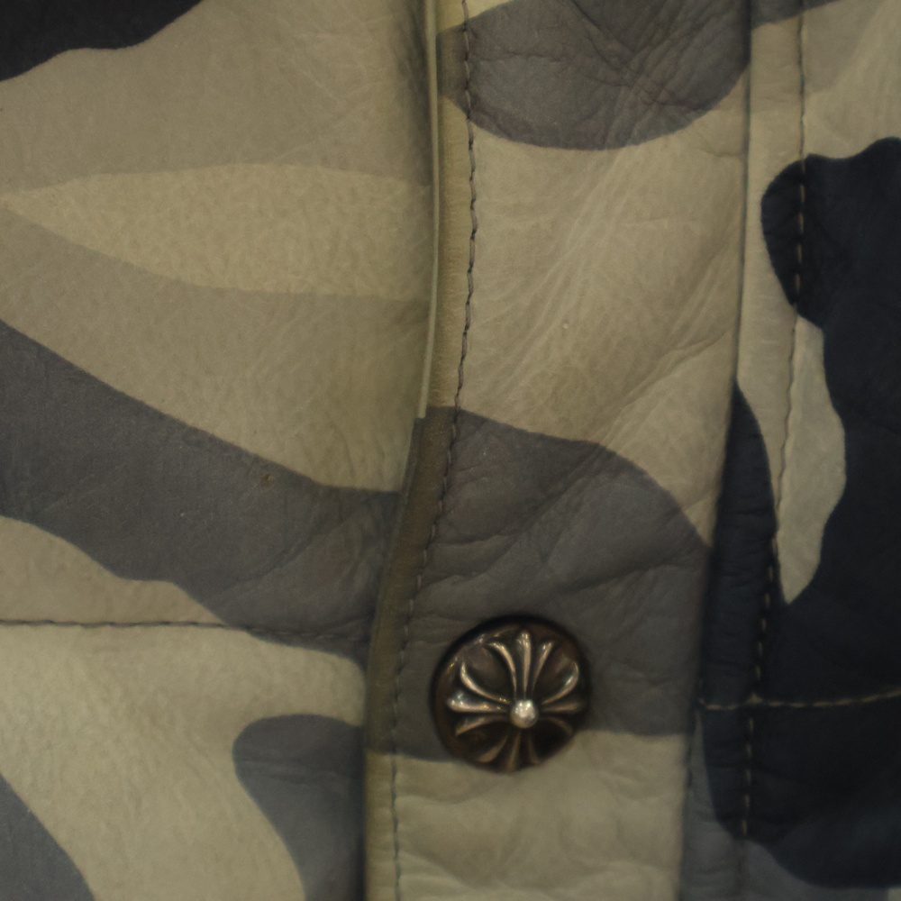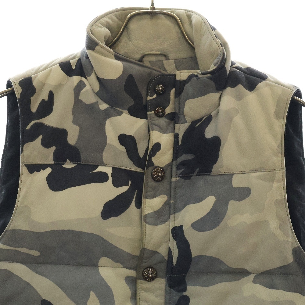 CHROME HEARTS クロムハーツ STIFF LTHR クロスボタン カモフラ柄レザーダウンベスト グレー