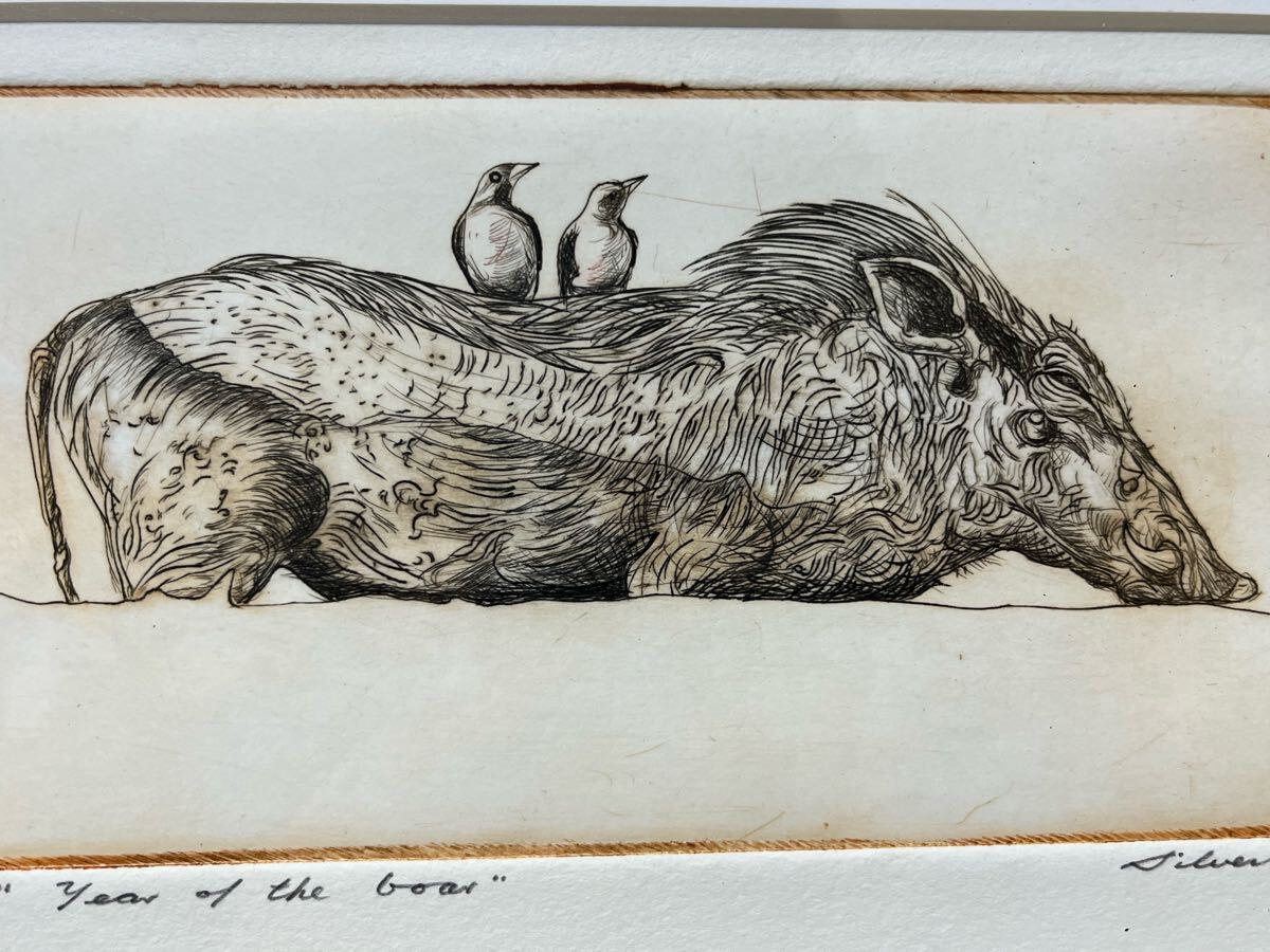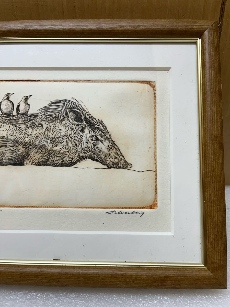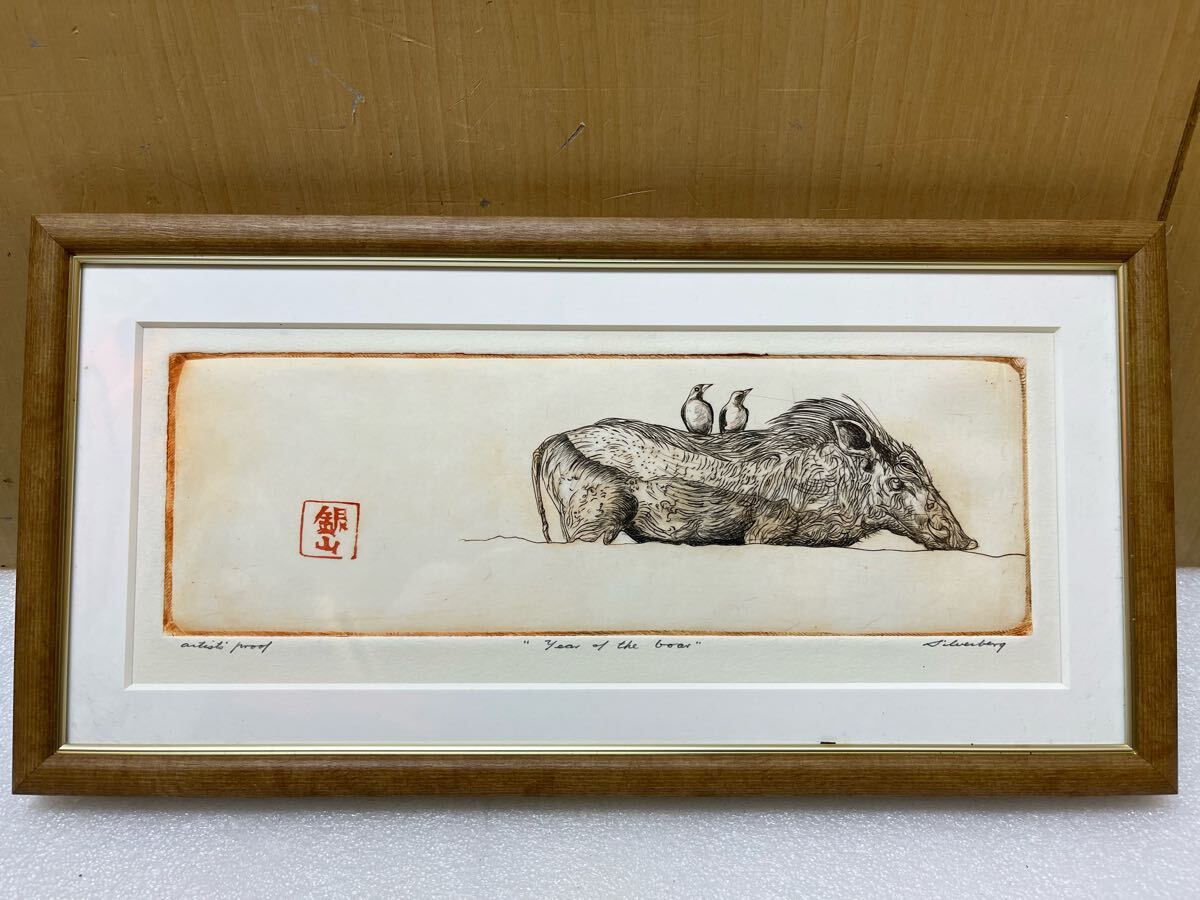 RE5427 イノシシ サインあり 詳細不明 額縁約40*20cm 現状品 0613