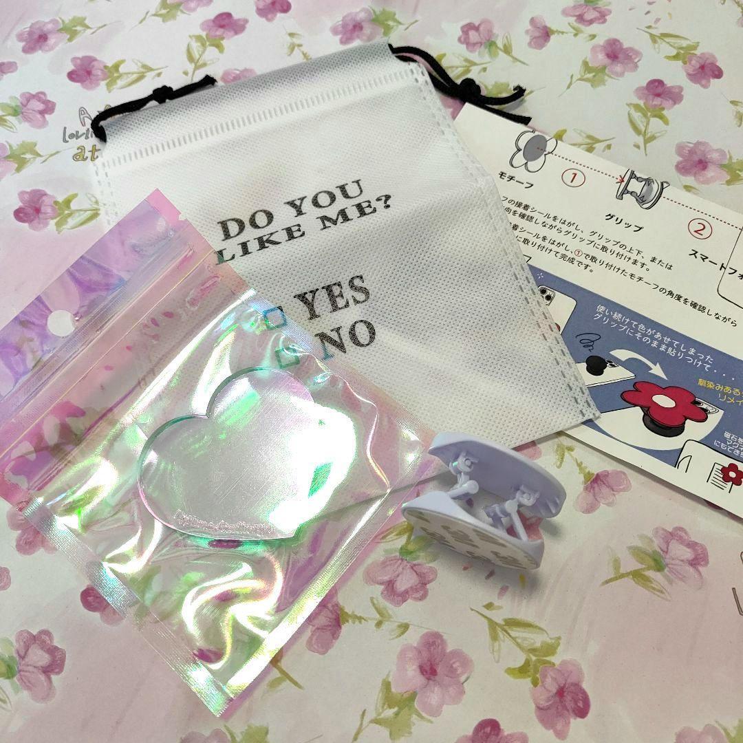 スマホグリップ ハート型ミラー 一台2役 スマホアクセサリー スマホスタンドにも