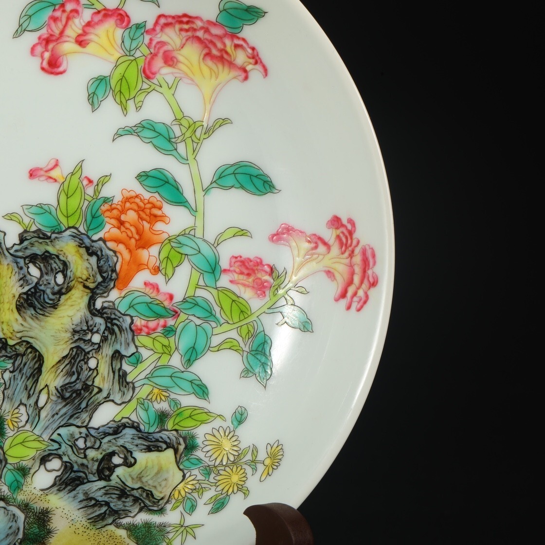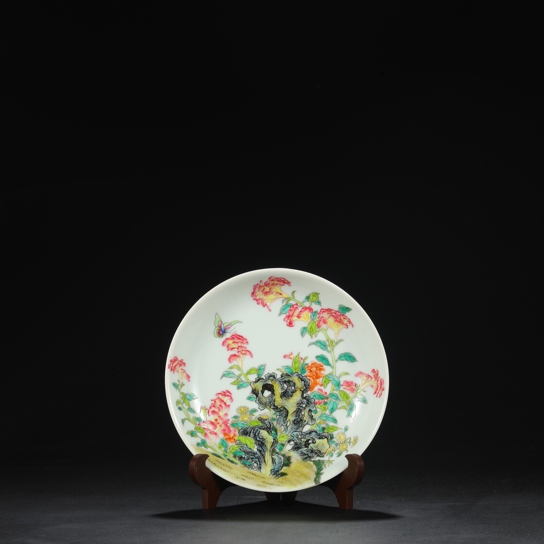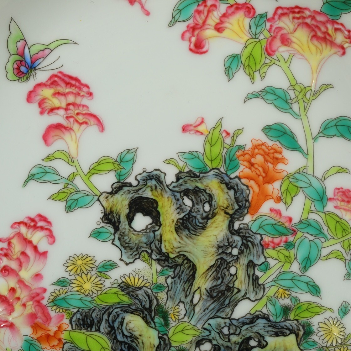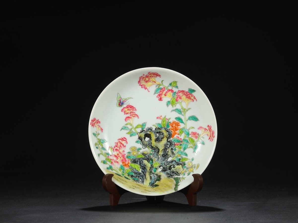 「清 雍正御製 陶磁器 琺瑯彩山石花卉 宮盤」染付 置物 擺件 古賞物 中国古美術 旧蔵出