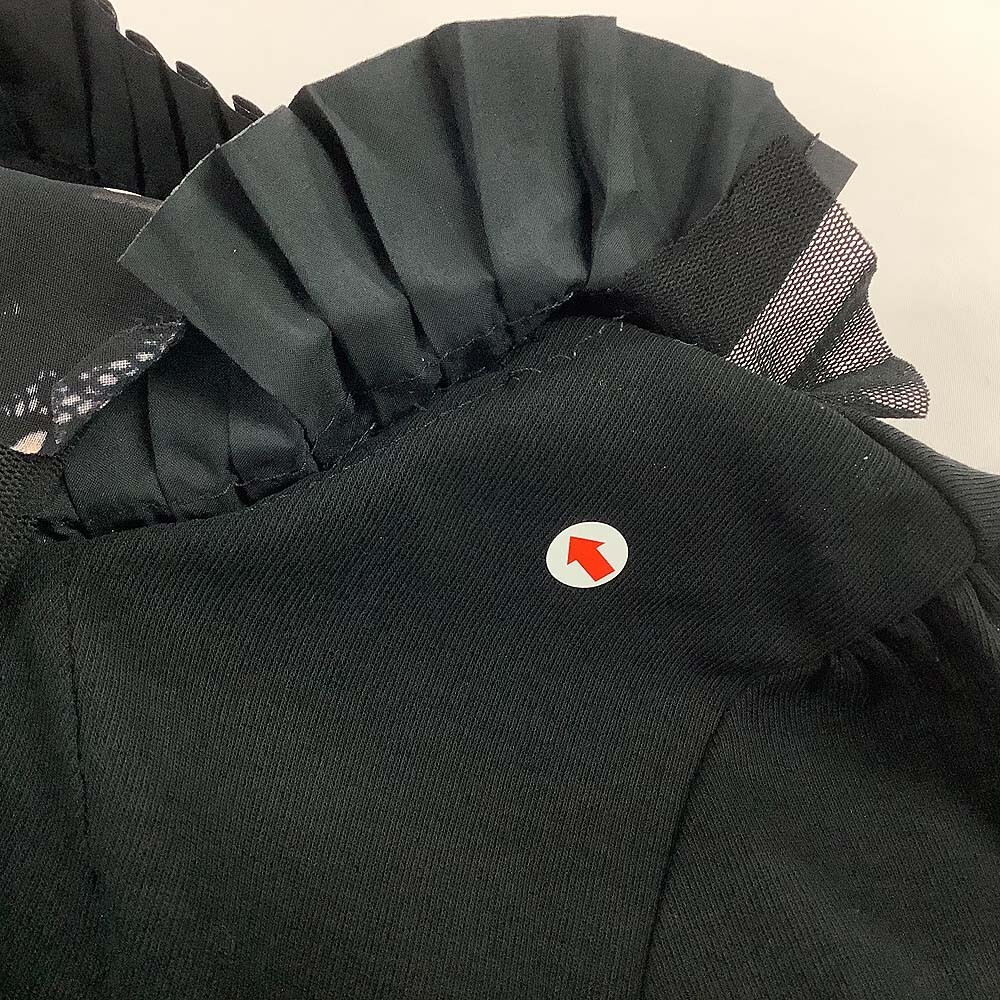 前身頃左鎖骨付近に1か所ステッチのホツレがあります。目立つ汚れはありません。