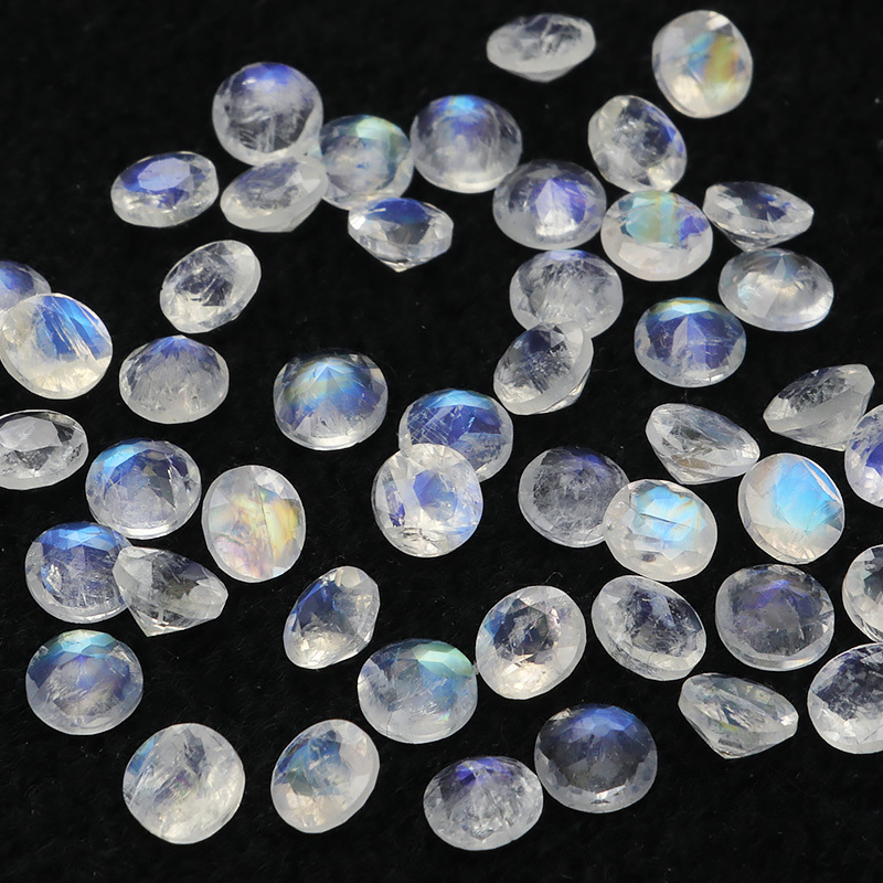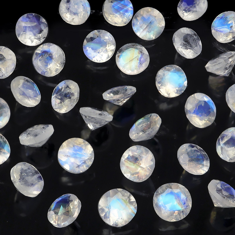 インド産 レインボームーンストーン コインファセットカット ルース 6mm【4コ販売】 / 82-37 MO5CO-X