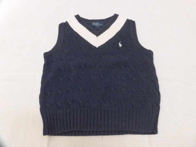 Polo by Ralph Lauren ラルフローレン ポニー刺繍 Vネック ニットベスト セーター ネイビー 5歳 120(115~124cm) キッズ 子ども服 子供用