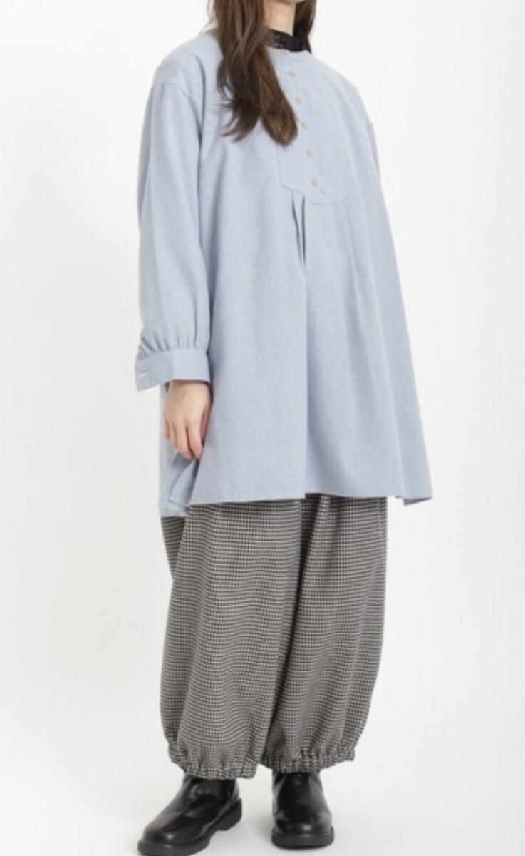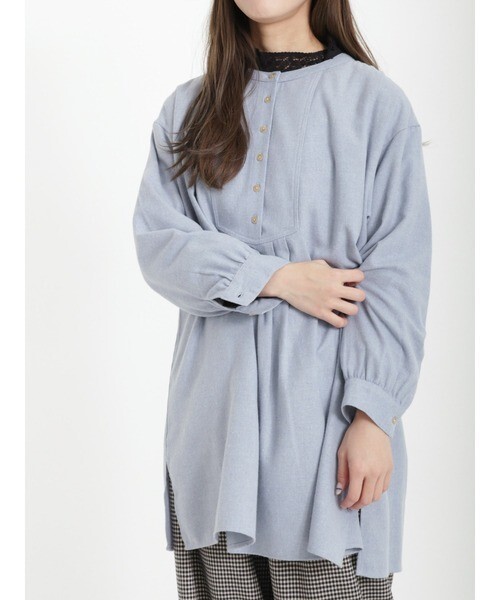 ブザムの切替デザインがレトロで上品な印象のクルーネックチュニック。