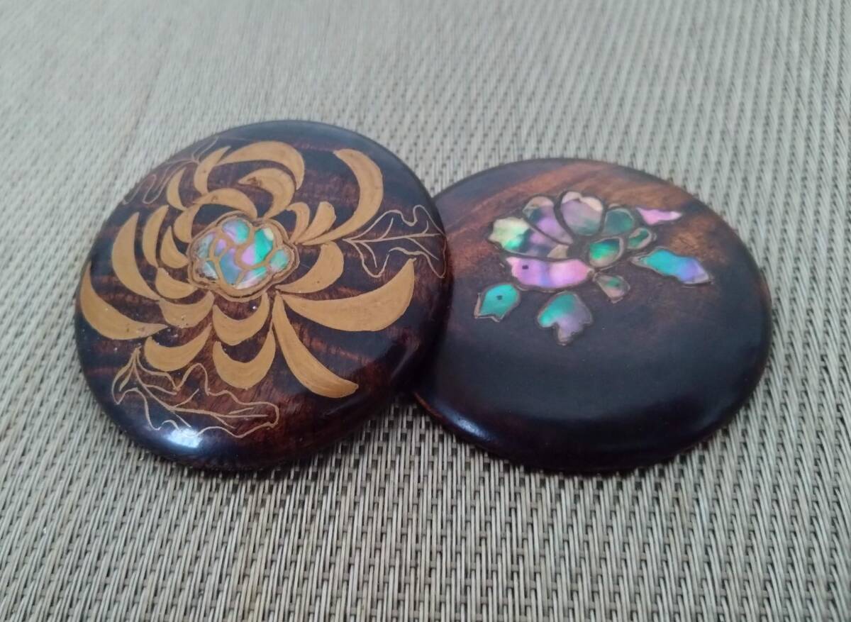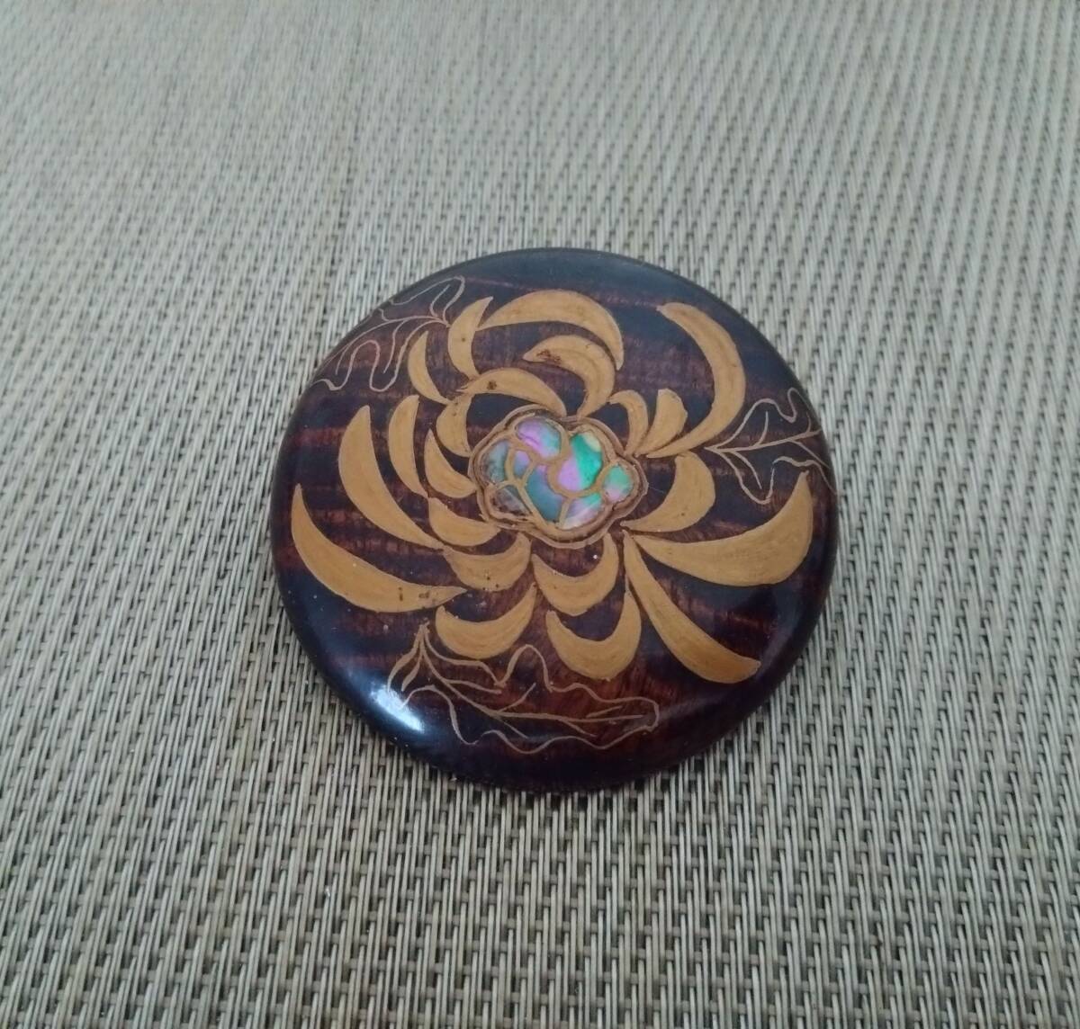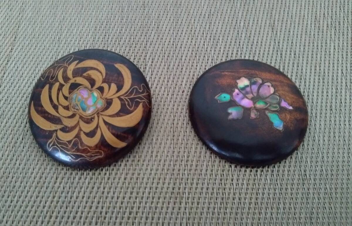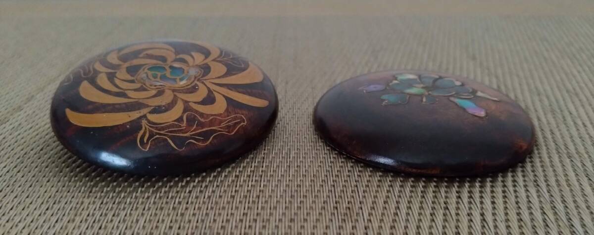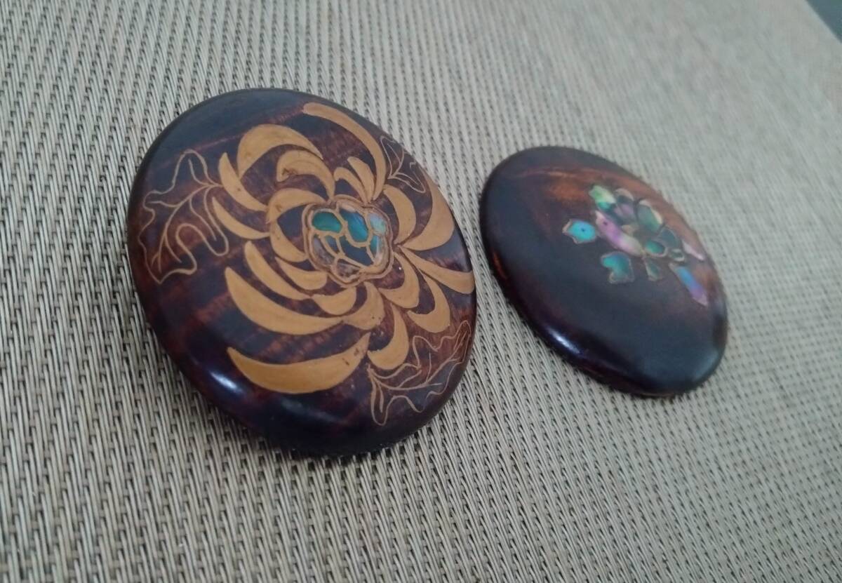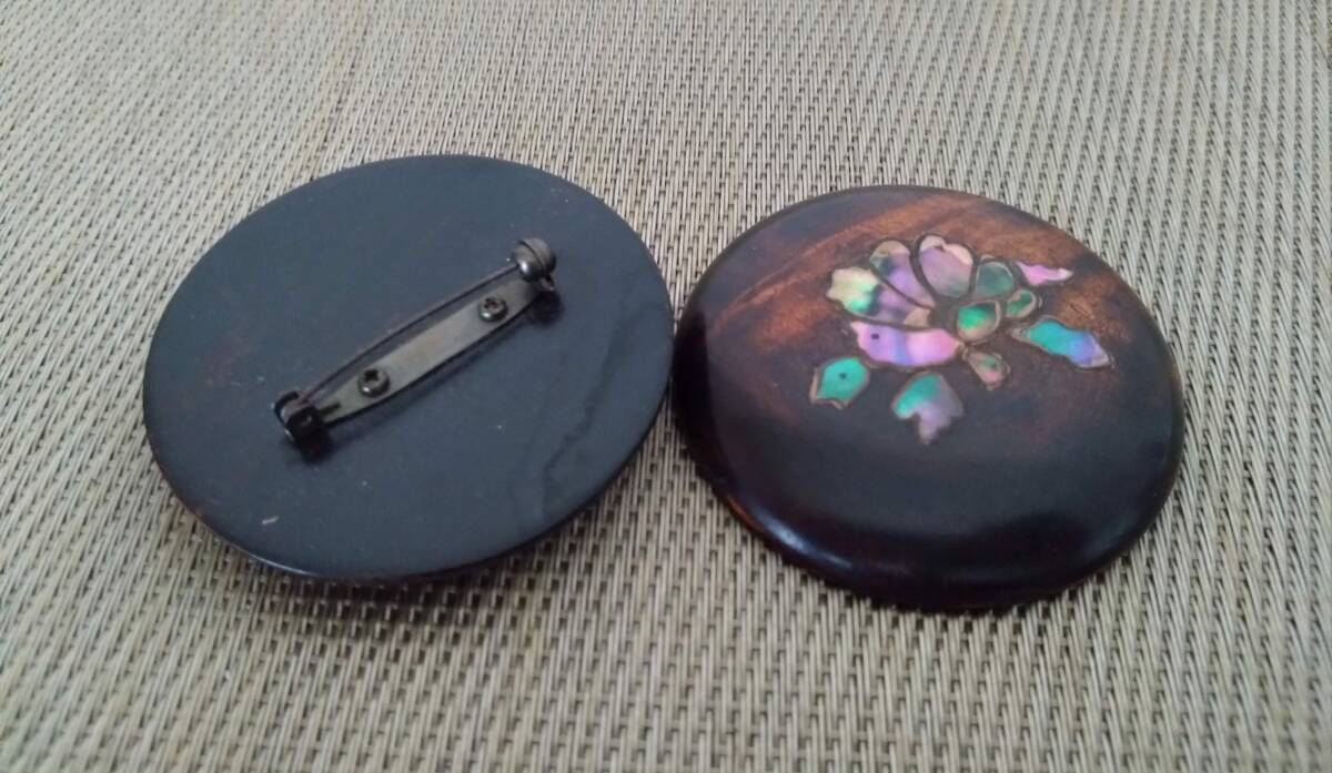 螺鈿 漆塗 ブローチ 2個セット 花文