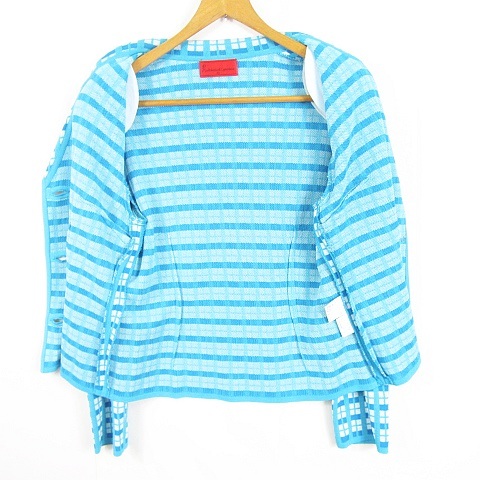 ロベルタディカメリーノ Roberta di Camerino ニット テーラード ジャケット 40 ライトブルー チェック ヴィンテージ kz11858 レディース