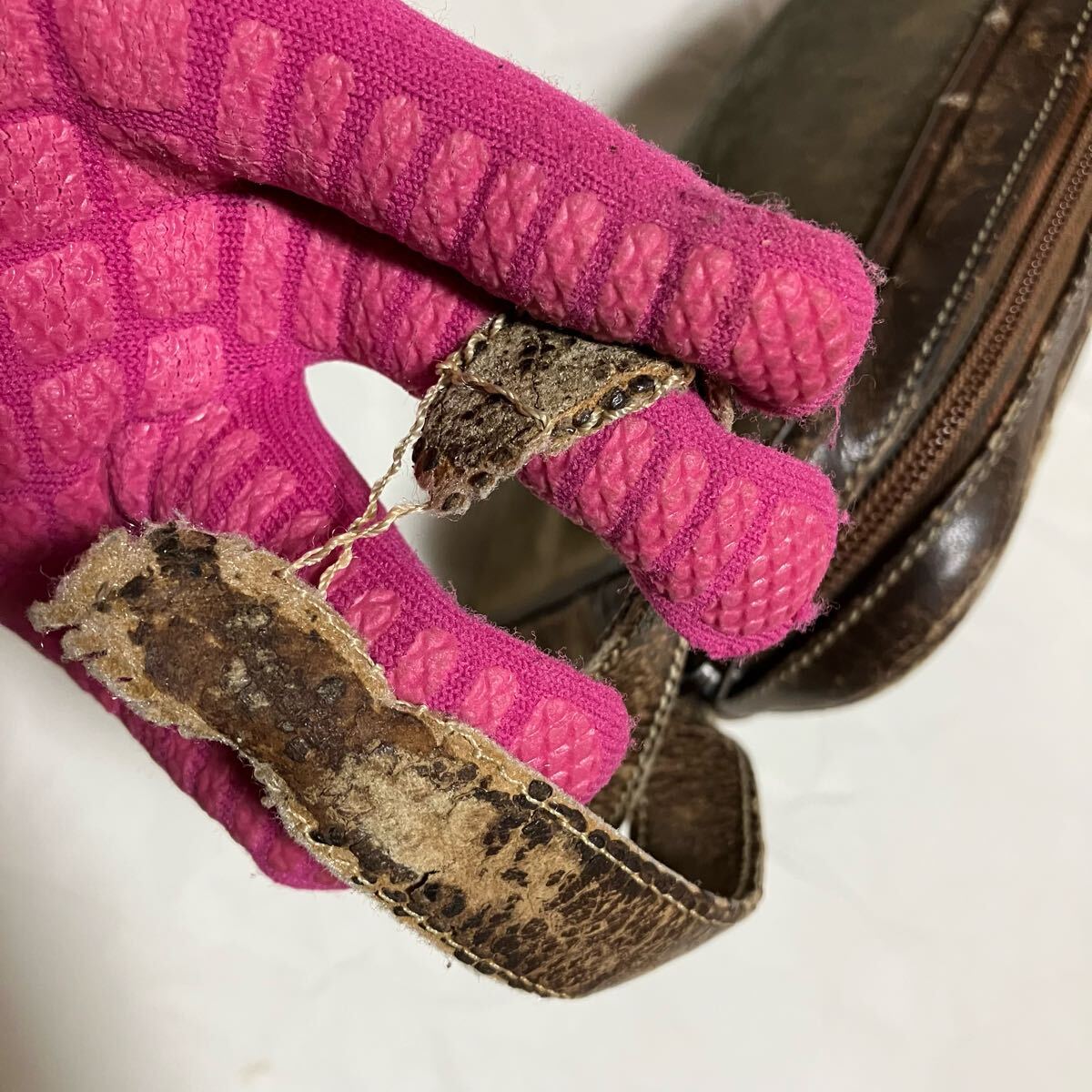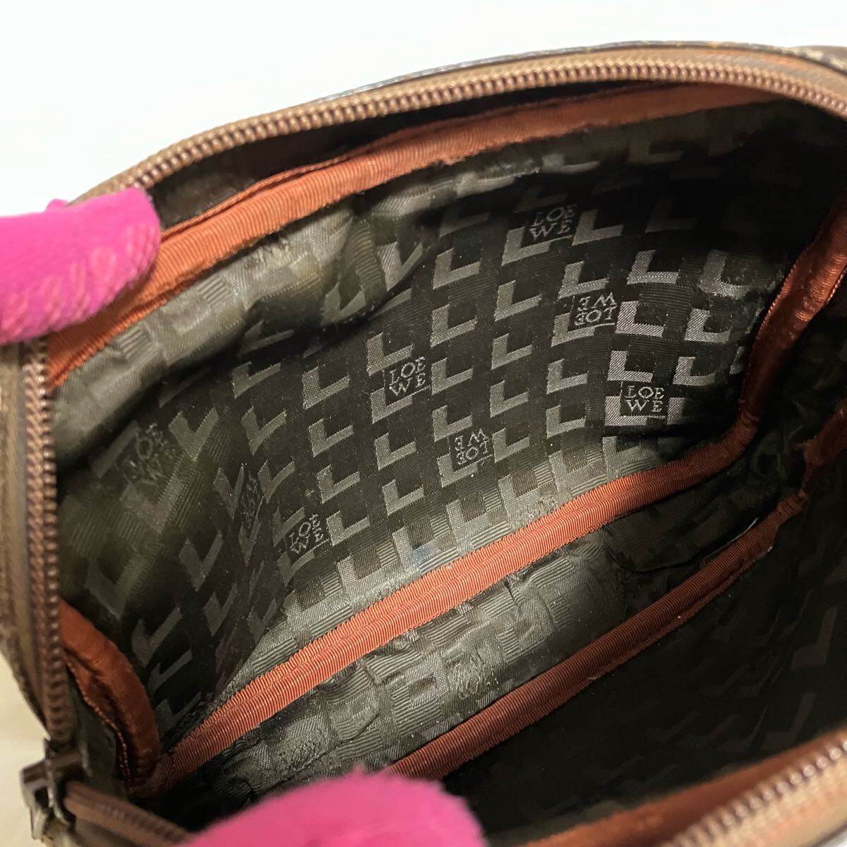 内側: ロエベのロゴ部分の剥がれた跡が見られます。(画像参照)