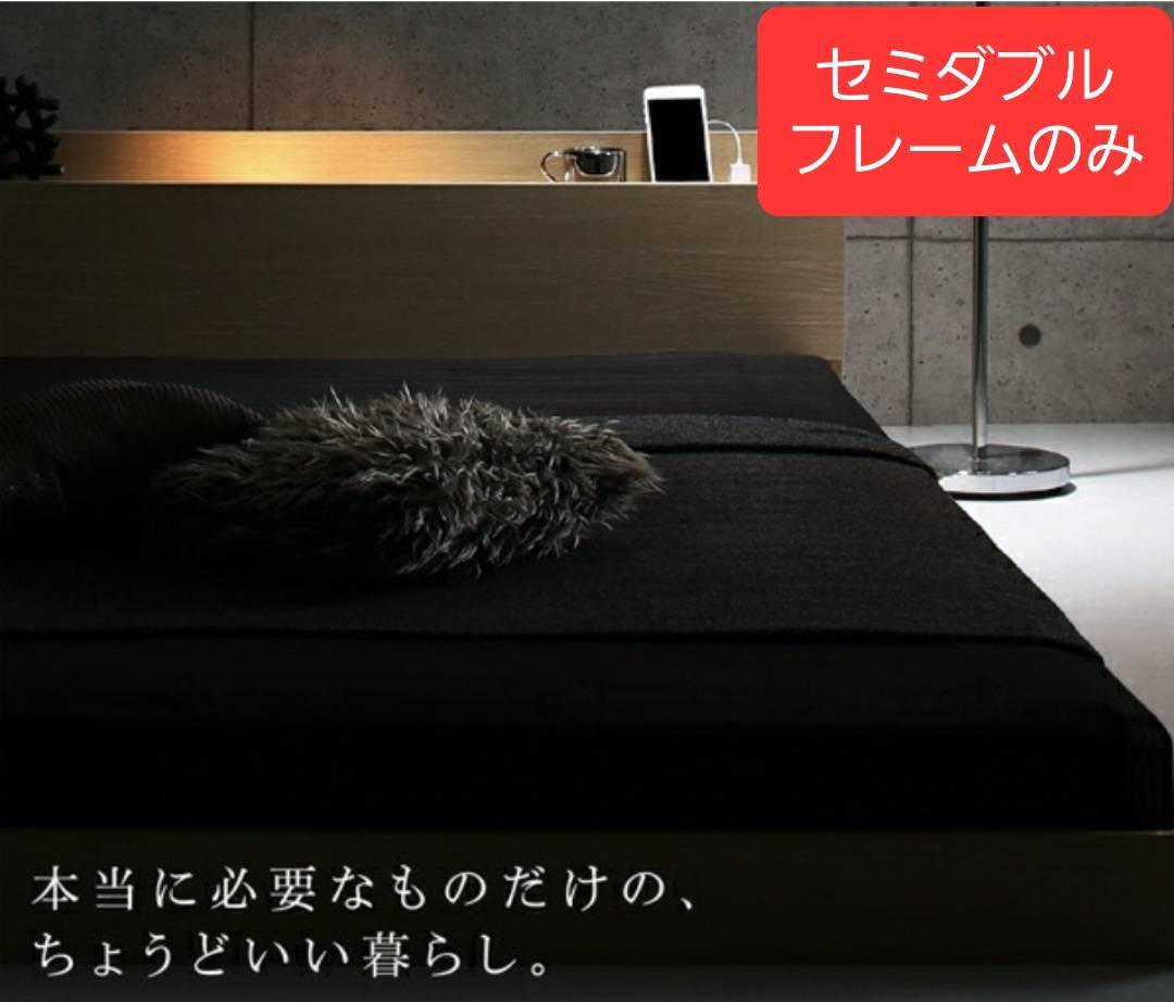 フレームのみ【アウトレット品】セミダブル 棚コンセント付き シンプルモダンフロアベッド オークホワイト