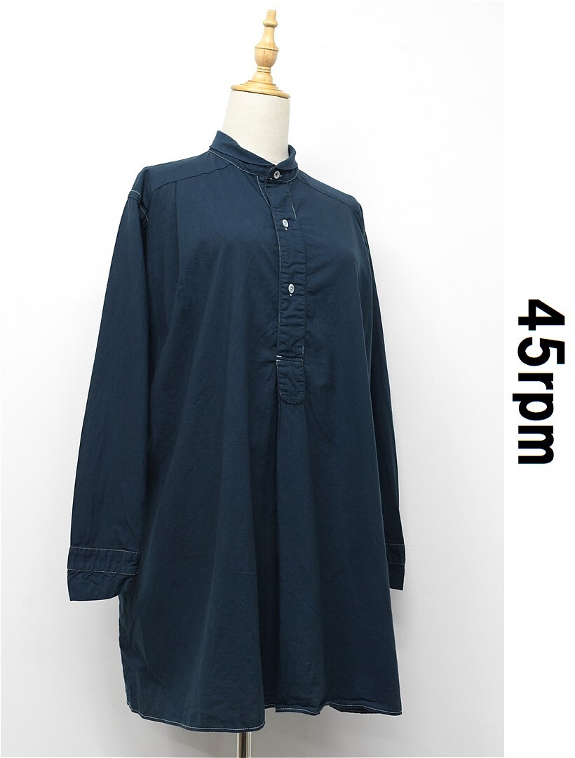 F441/45rpm ブラウス シャツ チュニック プルオーバー 藍染め ハーフボタン コットン 0 S 藍色 青