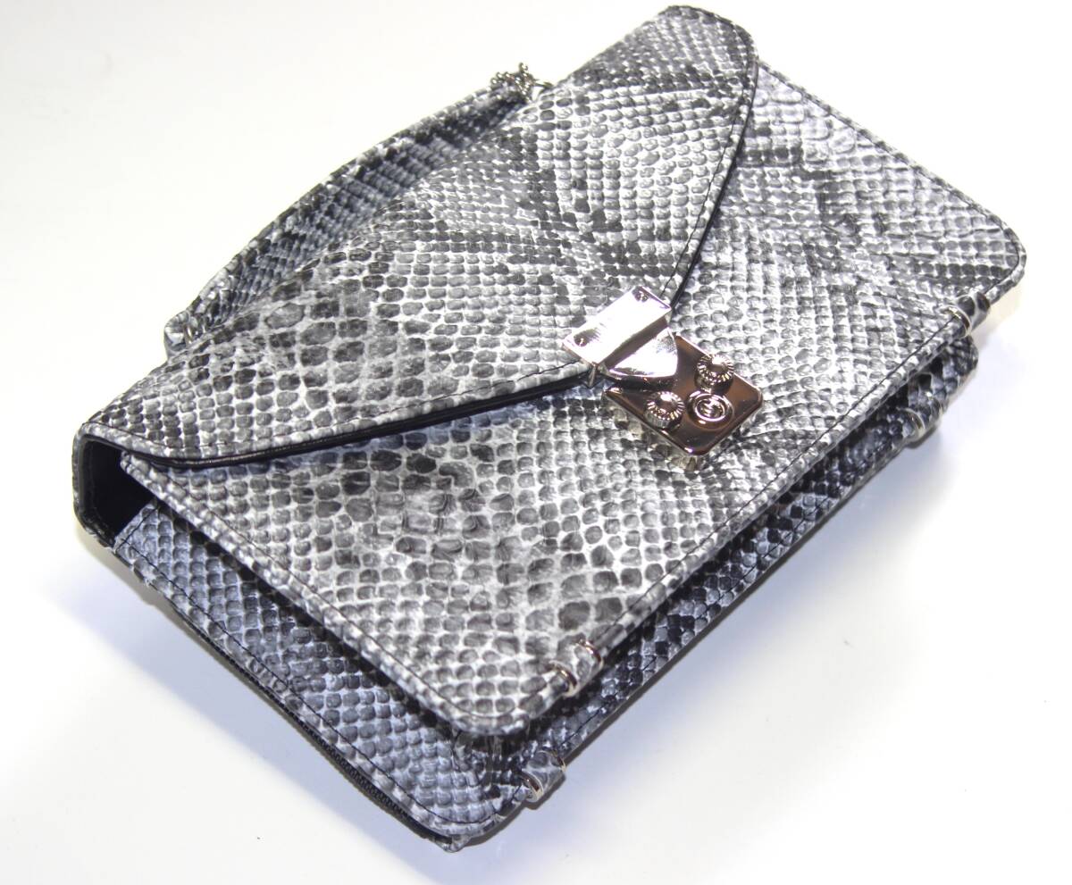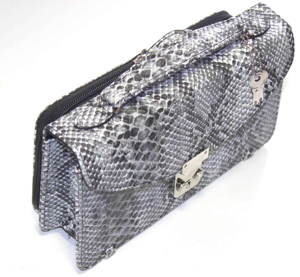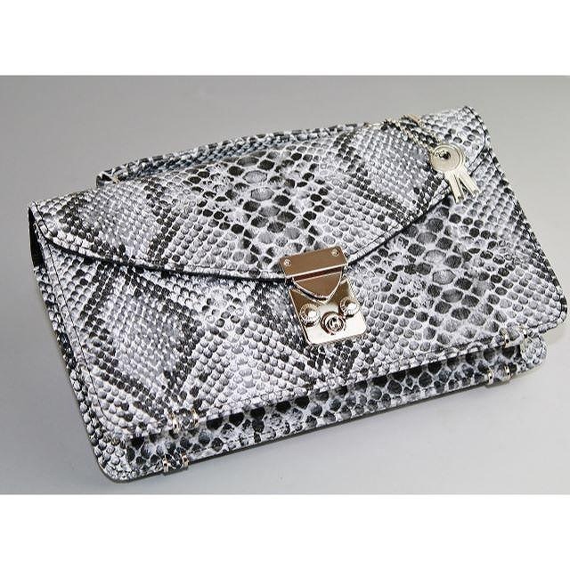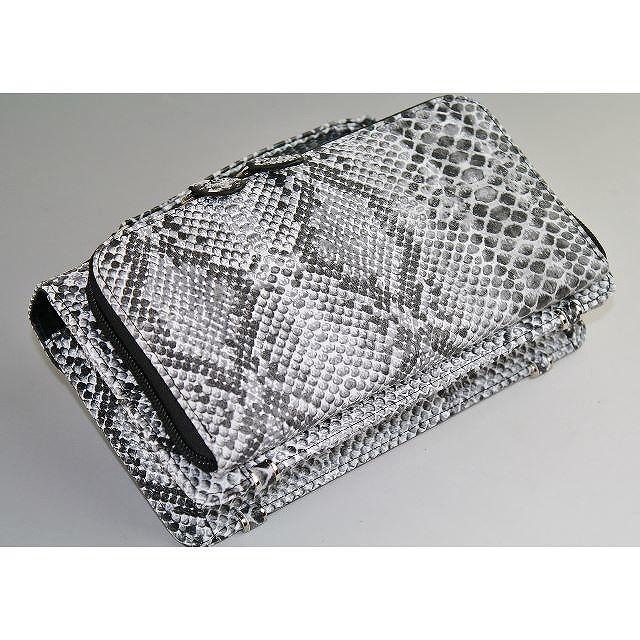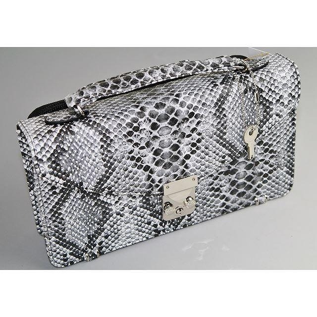 【1点限り赤字大特価】【送料込み】【期間限定】【新品】【税込み】リアルパイソン型押し 背面財布機能付き 鍵付き セカンドバッグ 灰