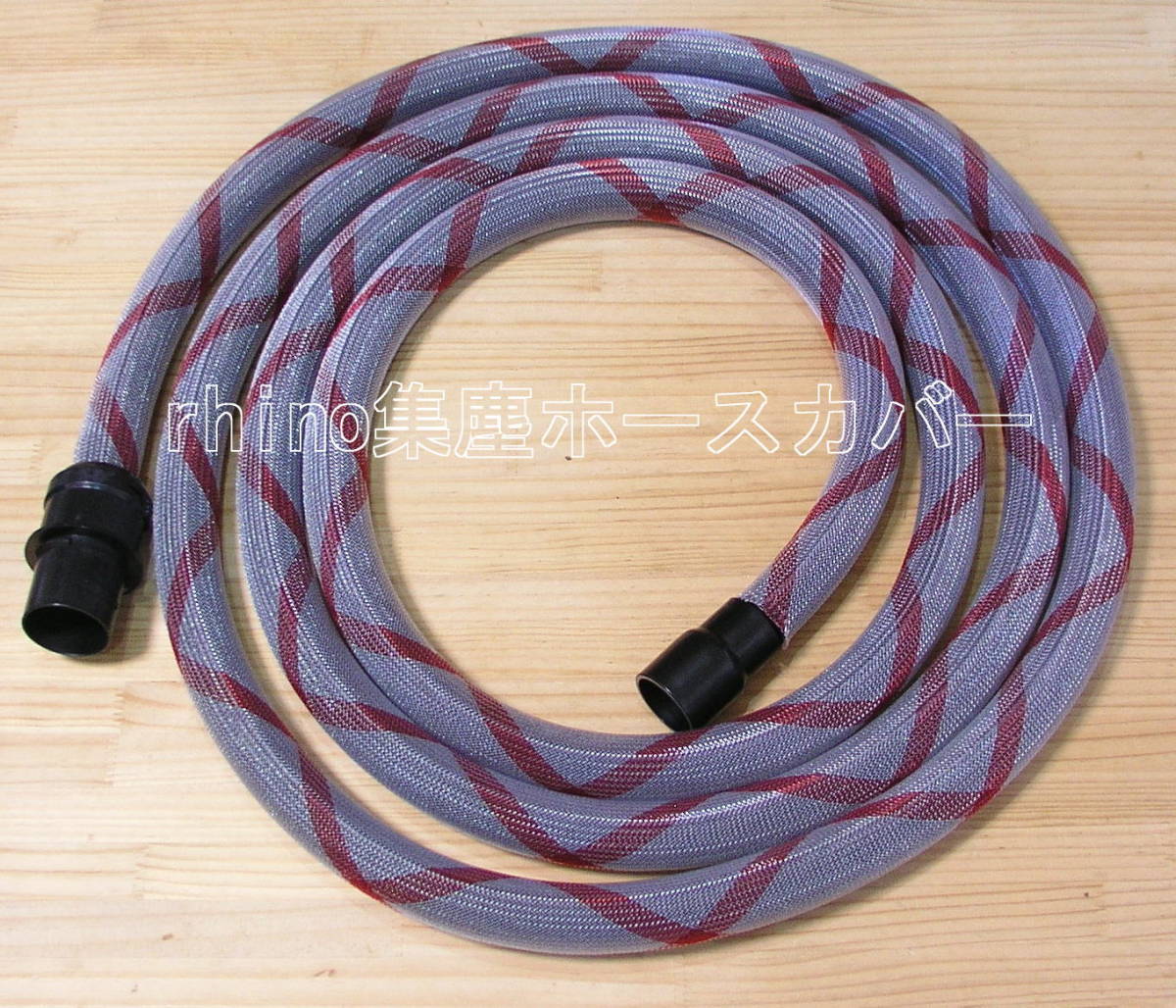 [rhino集塵ホースカバー]025クリアX赤 マキタ純正同等 内径28Φを5mフルカバー ロングライフ Q 検:防じんマルノコスパイラルコードホース