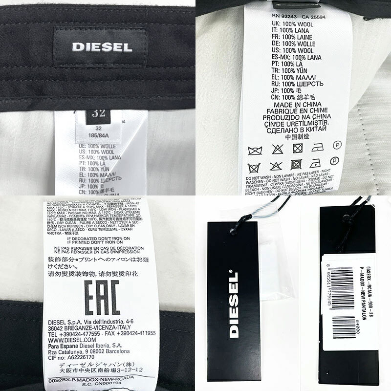 【77102-12】新品・在庫処分品 DIESEL ディーゼル マドックス ウール チノパンツ P-MADOX 00S2RX-RCAUA 黒 メンズ W32