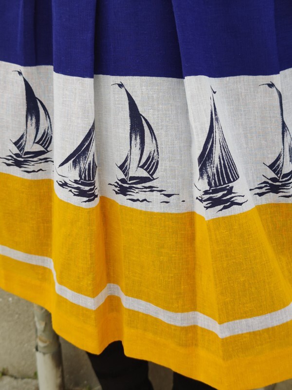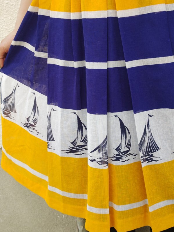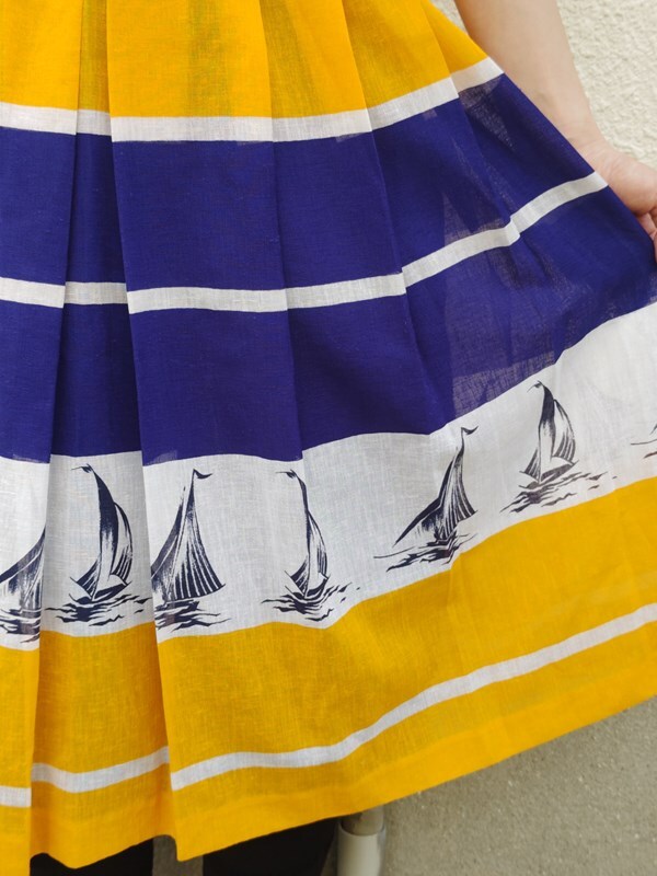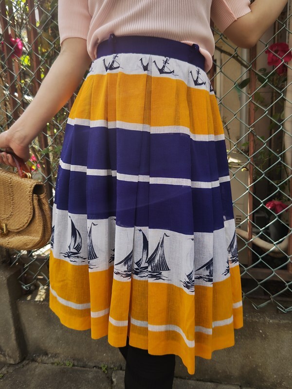 ヴィンテージ昭和レトロ古着*ヨット柄マリンスカート60’s70’sモダン国産