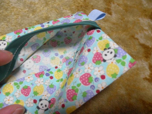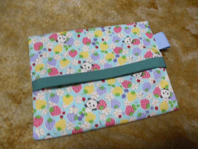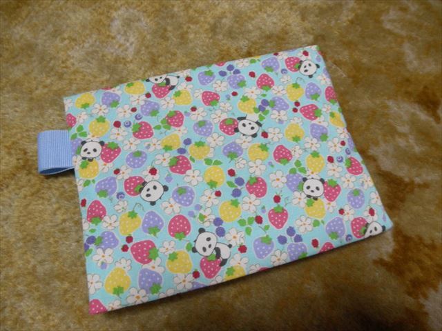 ハンドメイド品★水色系×イチゴ&パンダ柄 1枚仕立て ポケットティッシュカバー⑫★★