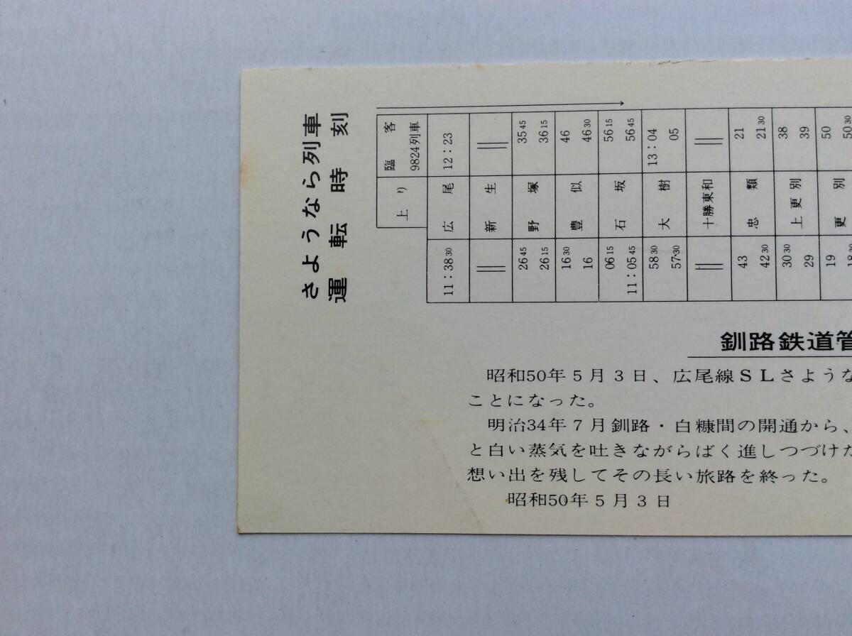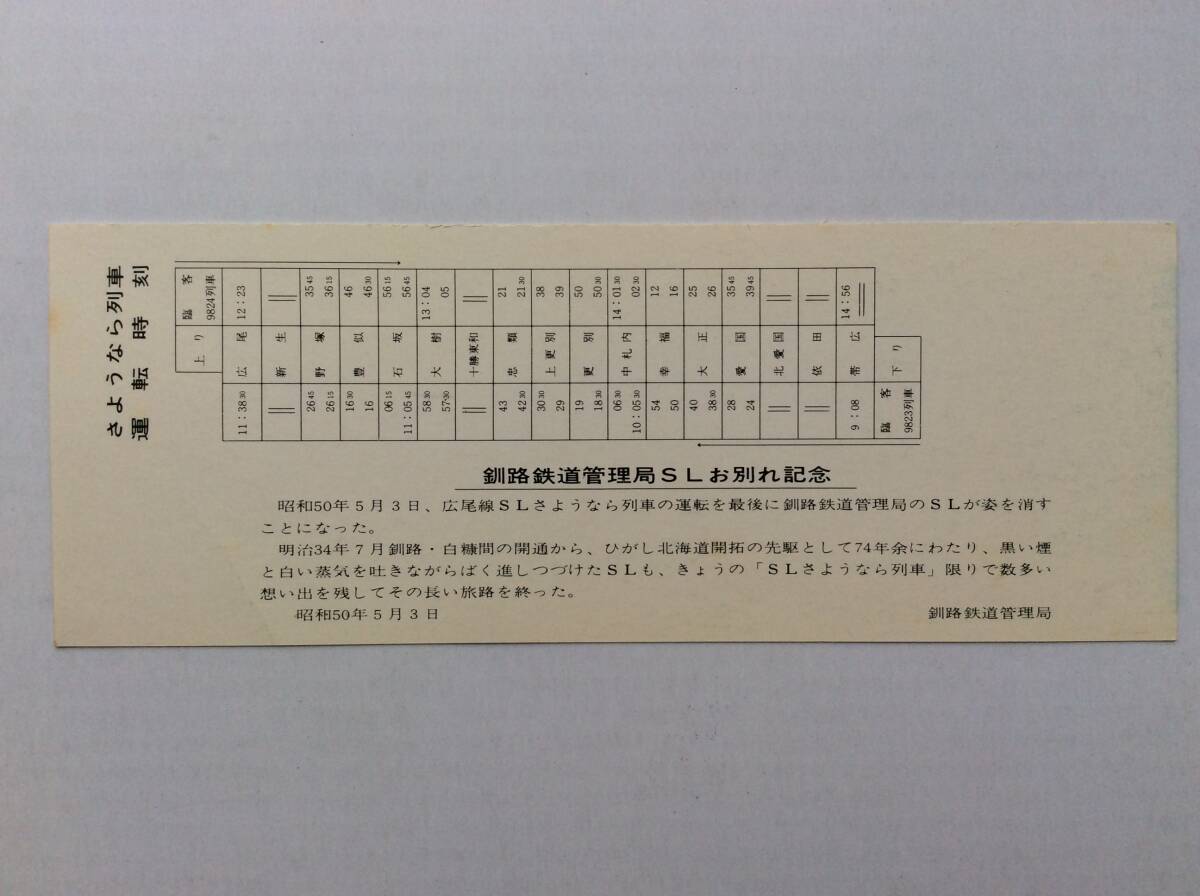 国鉄 SLさようなら運転記念 釧路鉄道管理局 昭和50年5月3日