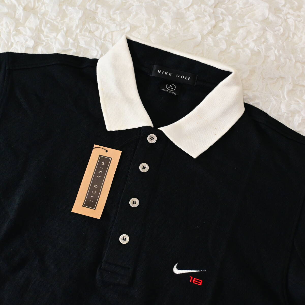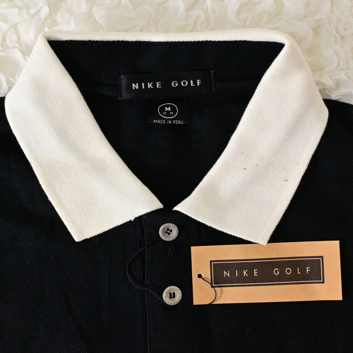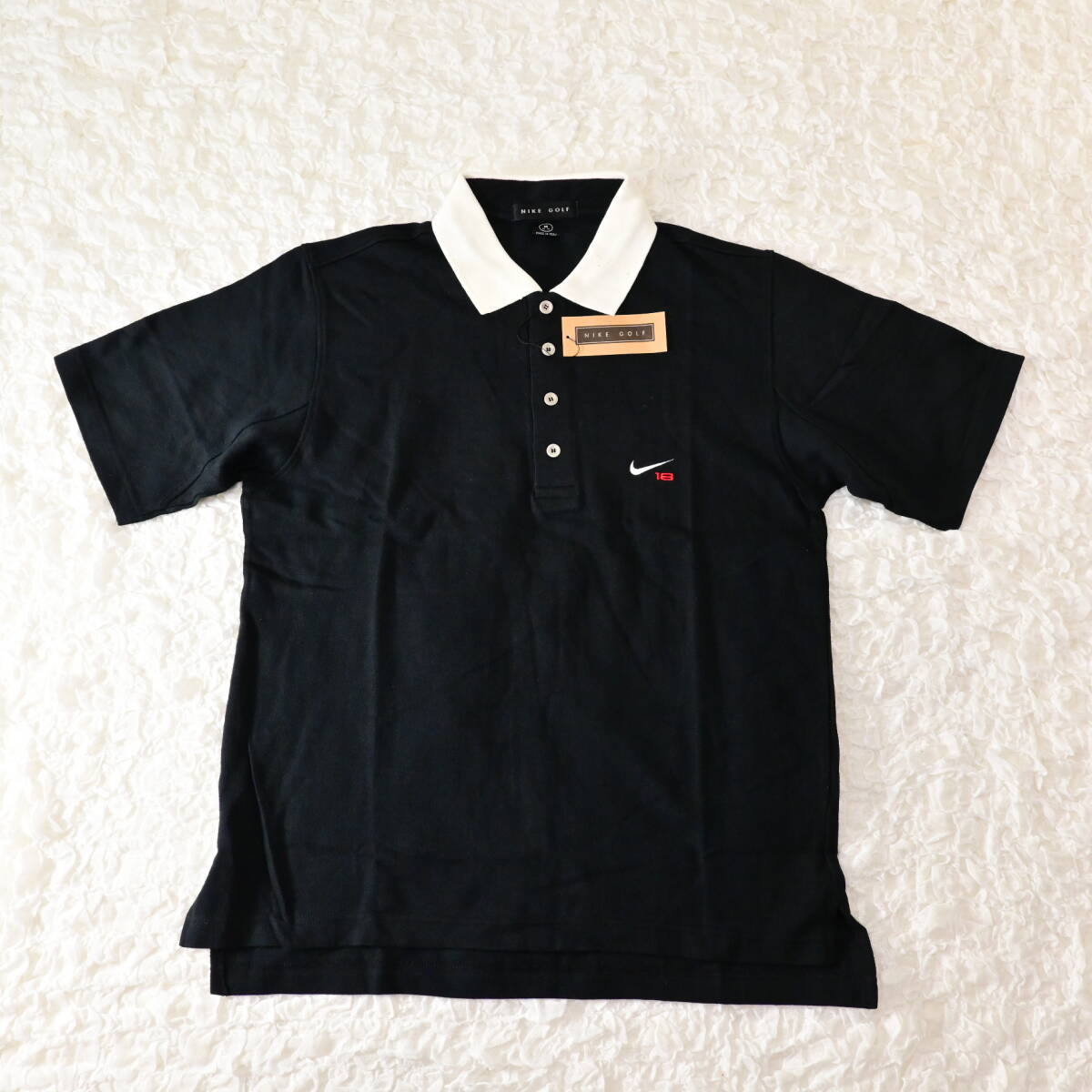 L4 難あり新品 Men 海外M ナイキゴルフ レトロ 黒 半袖ポロシャツ