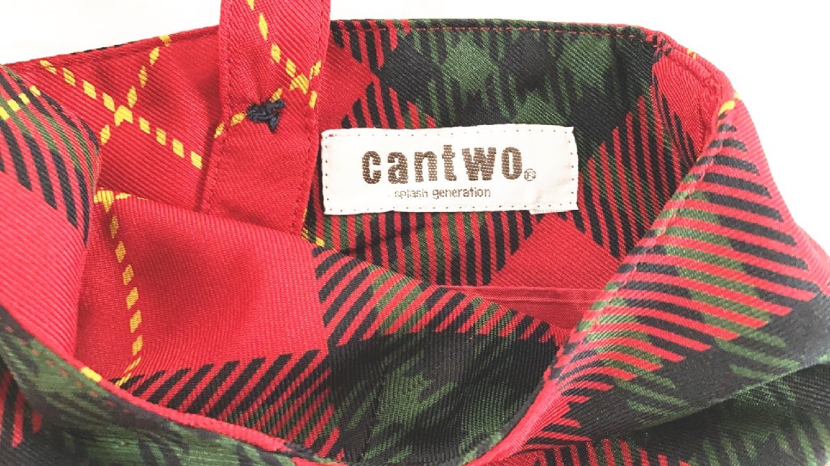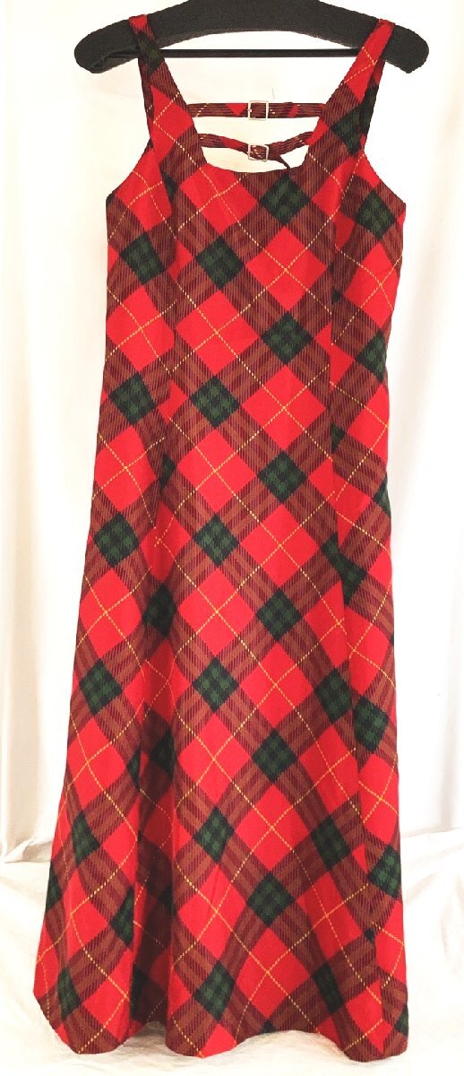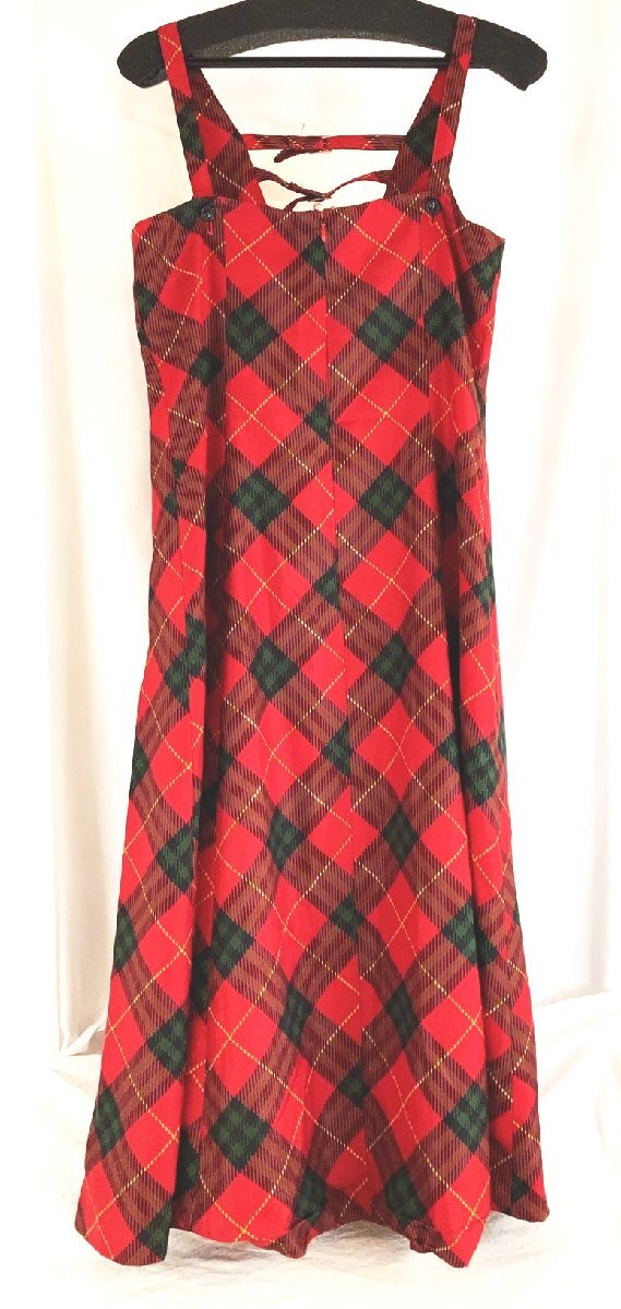 cantwo キャンツー 赤系マルチチェック柄 マキシ 肩紐ワンピース Mぐらい UC-15