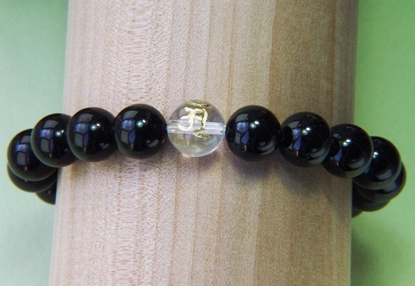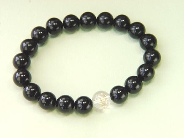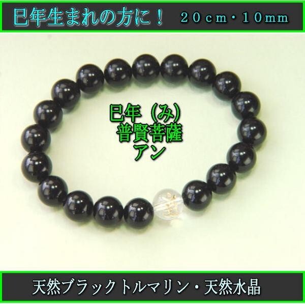 ◆宝石材質:天然ブラックトルマリン 20石、天然水晶 1石 ◆宝石玉サイズ=直径約10mm ◆長さ:約20cm |