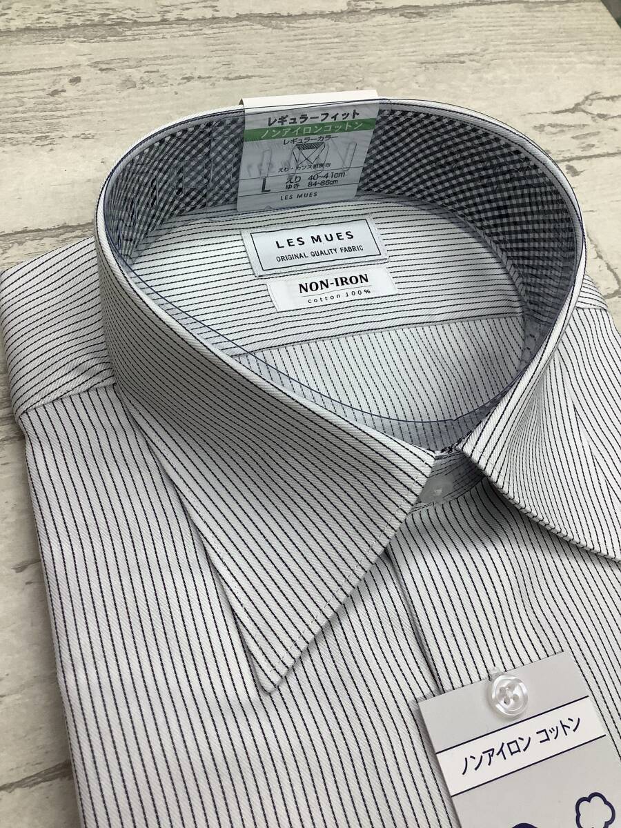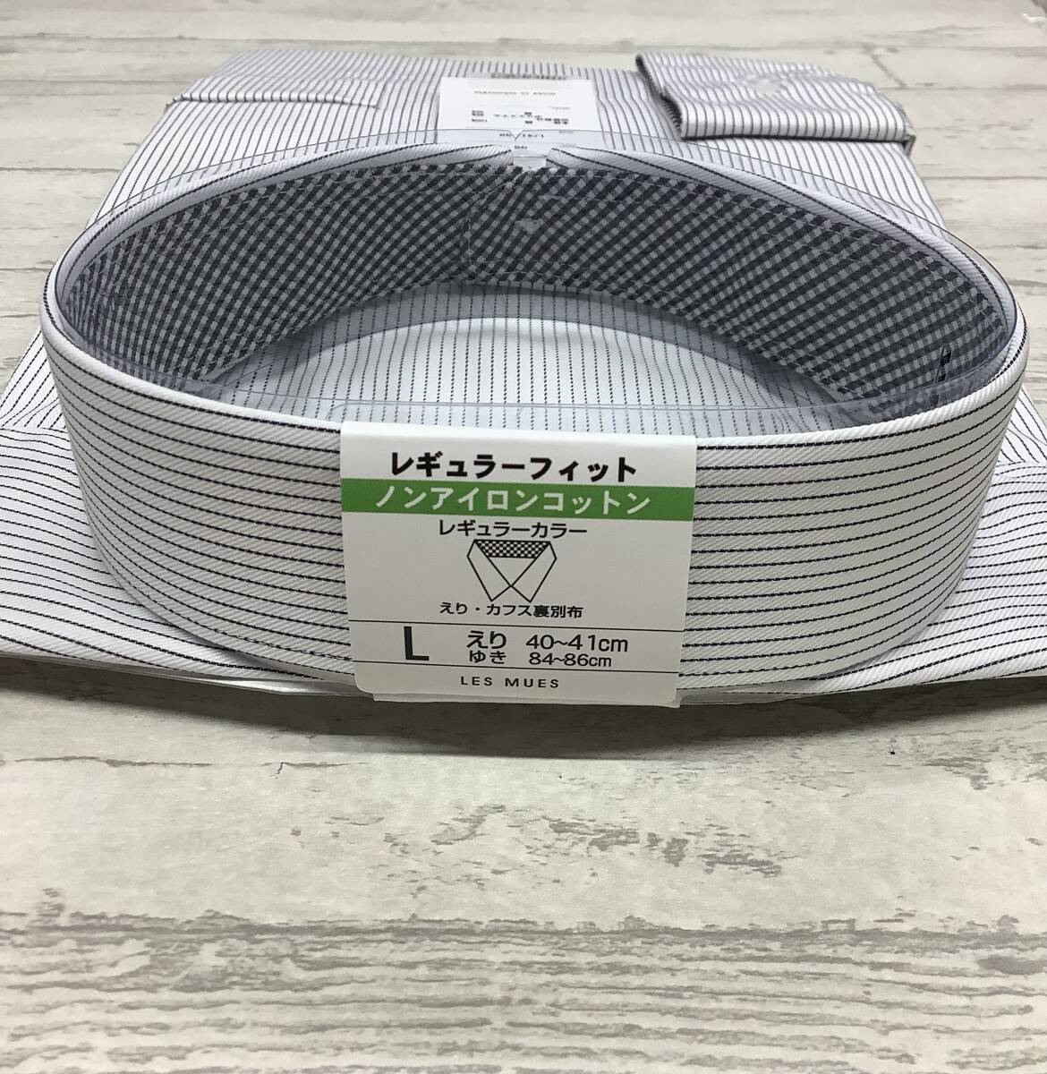 41-86 長袖Lサイズ ★綿100% ★レギュラーカラードレスシャツ ★ノンアイロンコットン ★黒ストライプ