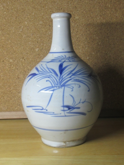 ★染付・若笹文徳利★中期幕末・古伊万里・一輪挿し★焼き物・完品・花器★骨董・レア・ビンテージ・レトロ・アンティーク・美品★