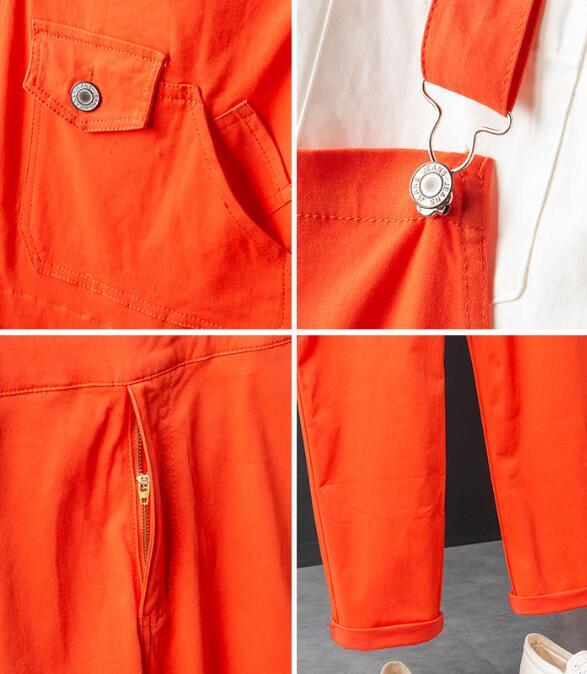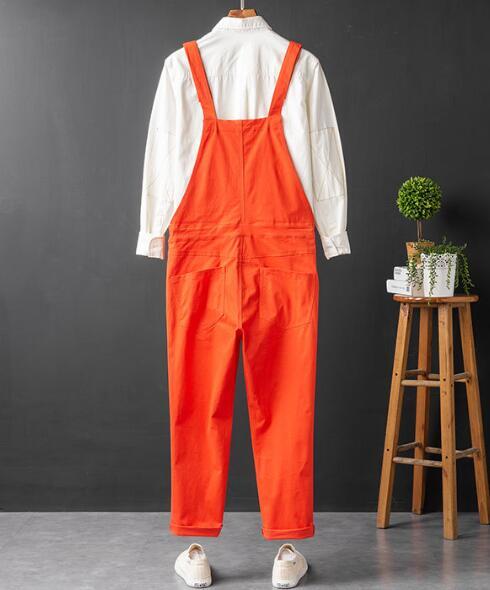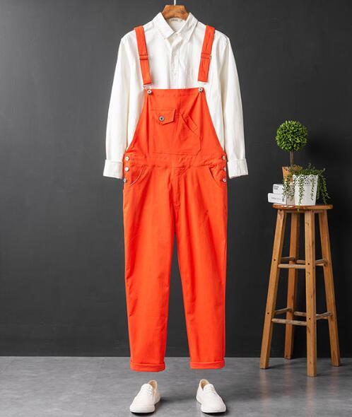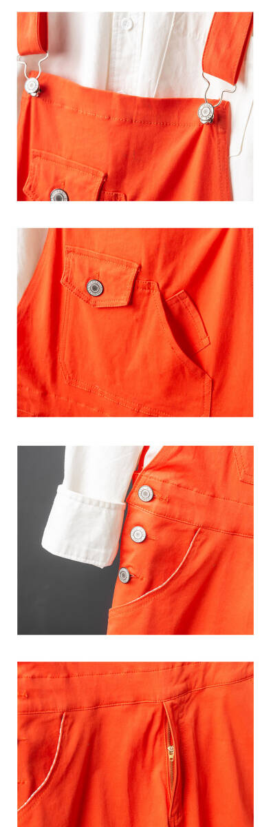 メンズサロペット オーバーオール デニム オールインワン ジーンズ つなぎ サスペンダーズボン ペインター作業服 S~4XLオレンジ