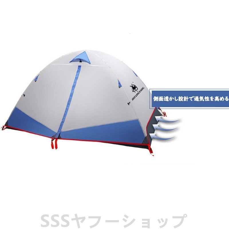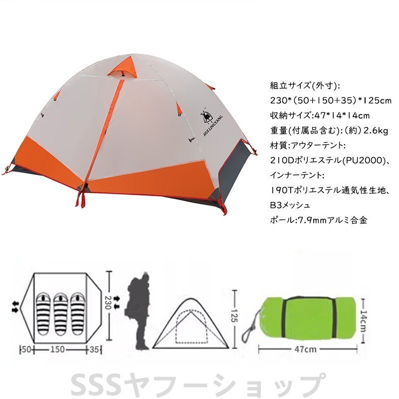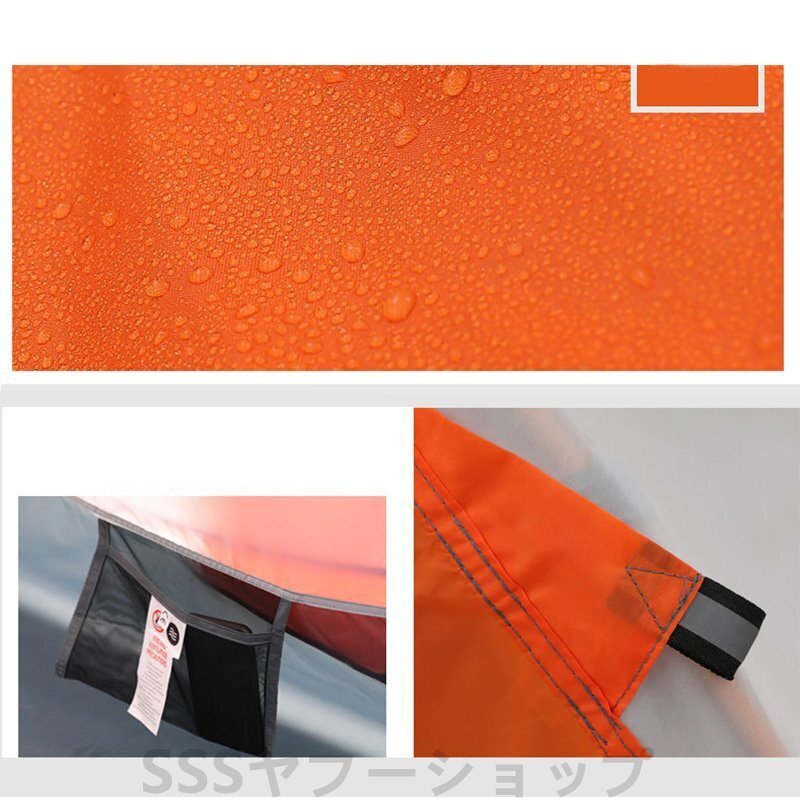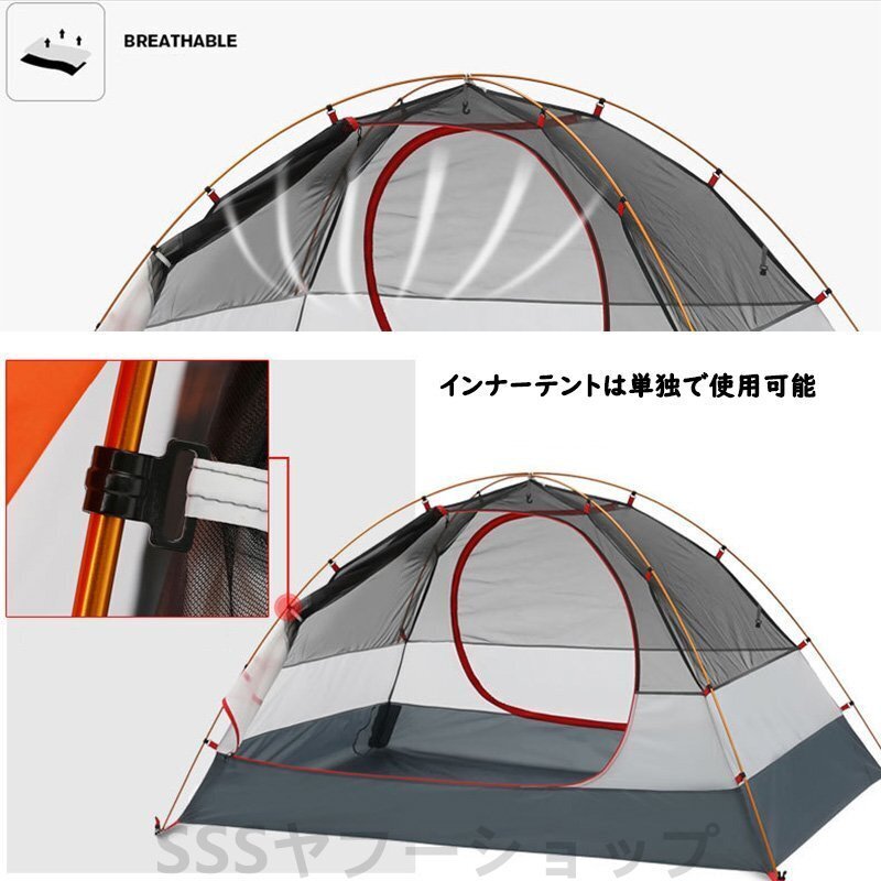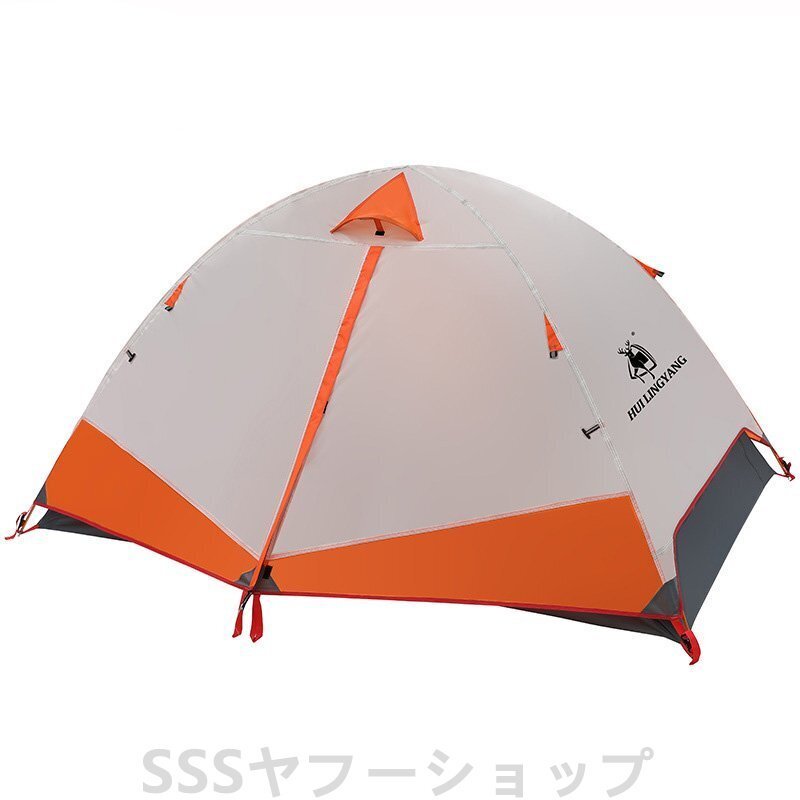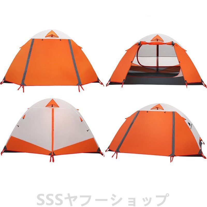 テント 2人用 ソロテント 軽量 4シーズン 二重層耐水圧2000MM 防水 登山テント 防雨 防風 防寒 キャンプ アウトドア 簡単設営 オレンジ