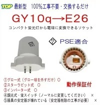 2025年最新型■100%工事不要■PSE適合■GY10q(完全対応)→E26変換ソケット品番KS-GY10q-E26 FPL18適合 送料無料!