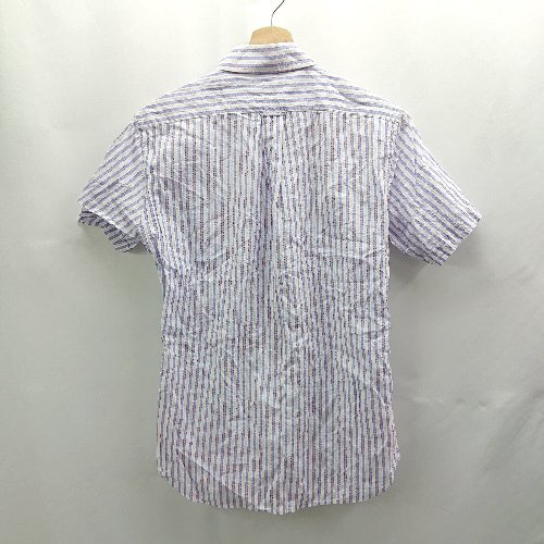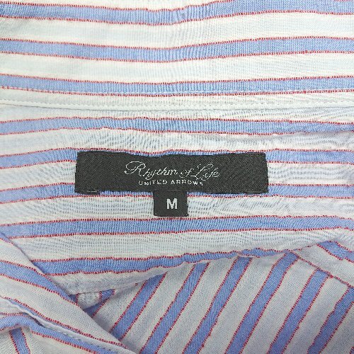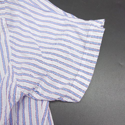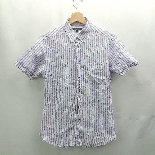 ◇ ⊂ UNITED ARROWS ユナイテッドアローズ ストライプ柄 半袖 シャツ サイズM ブルー系 メンズ E