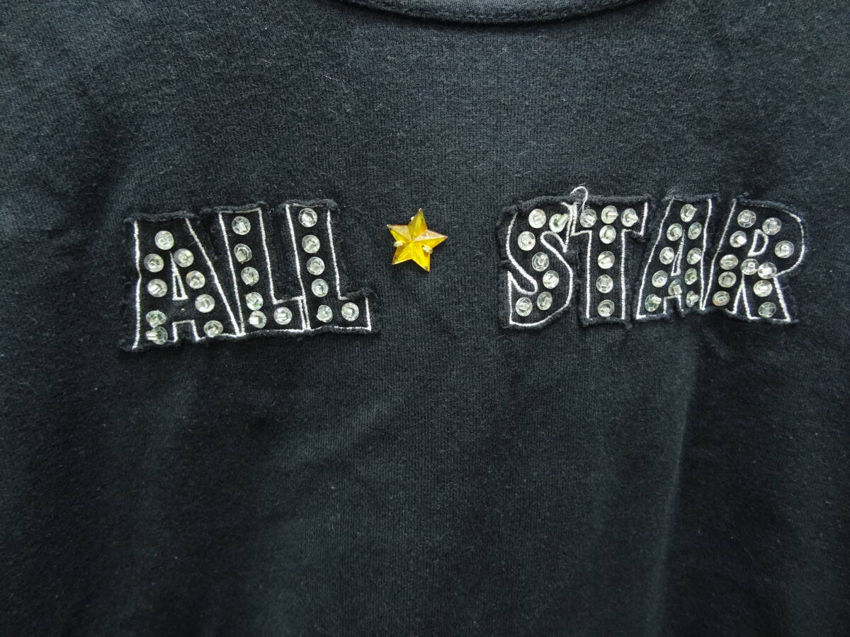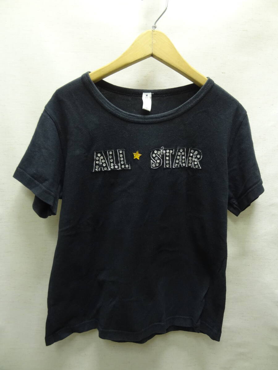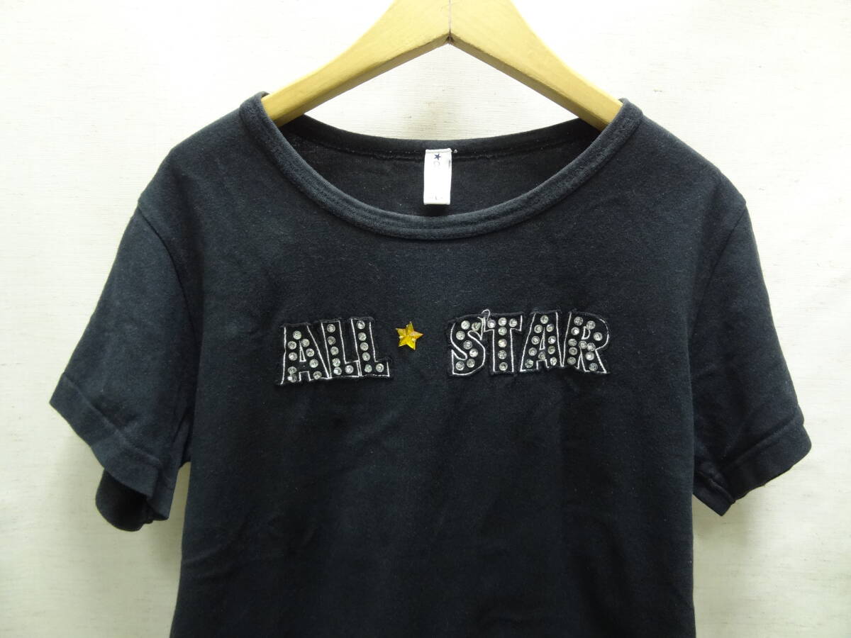 全国送料無料 コンバース CONVERSE レディース 綿100%素材 半袖 キラキラビーズ付き 黒色 ALL STAR Tシャツ Lサイズ