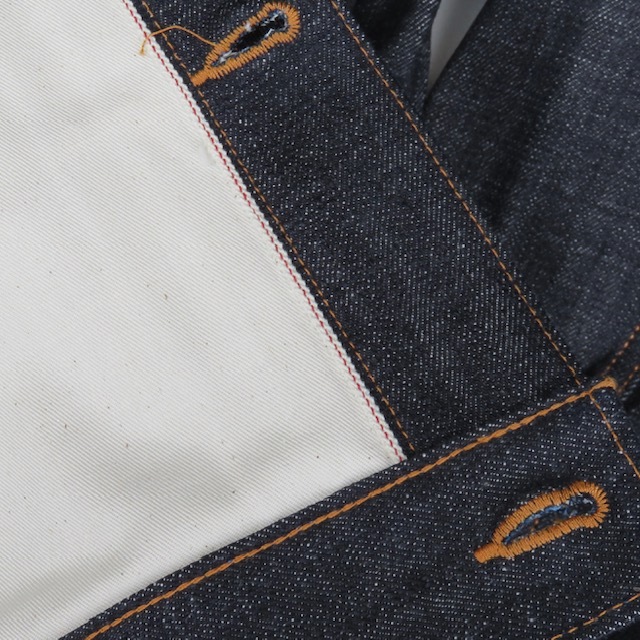 ■FRONTボタン裏には、ミミ付デニムが使用されています