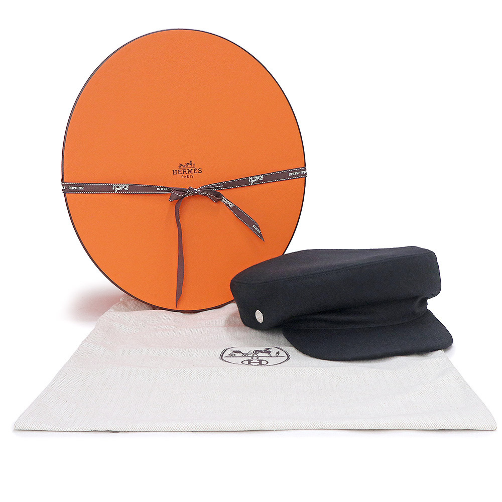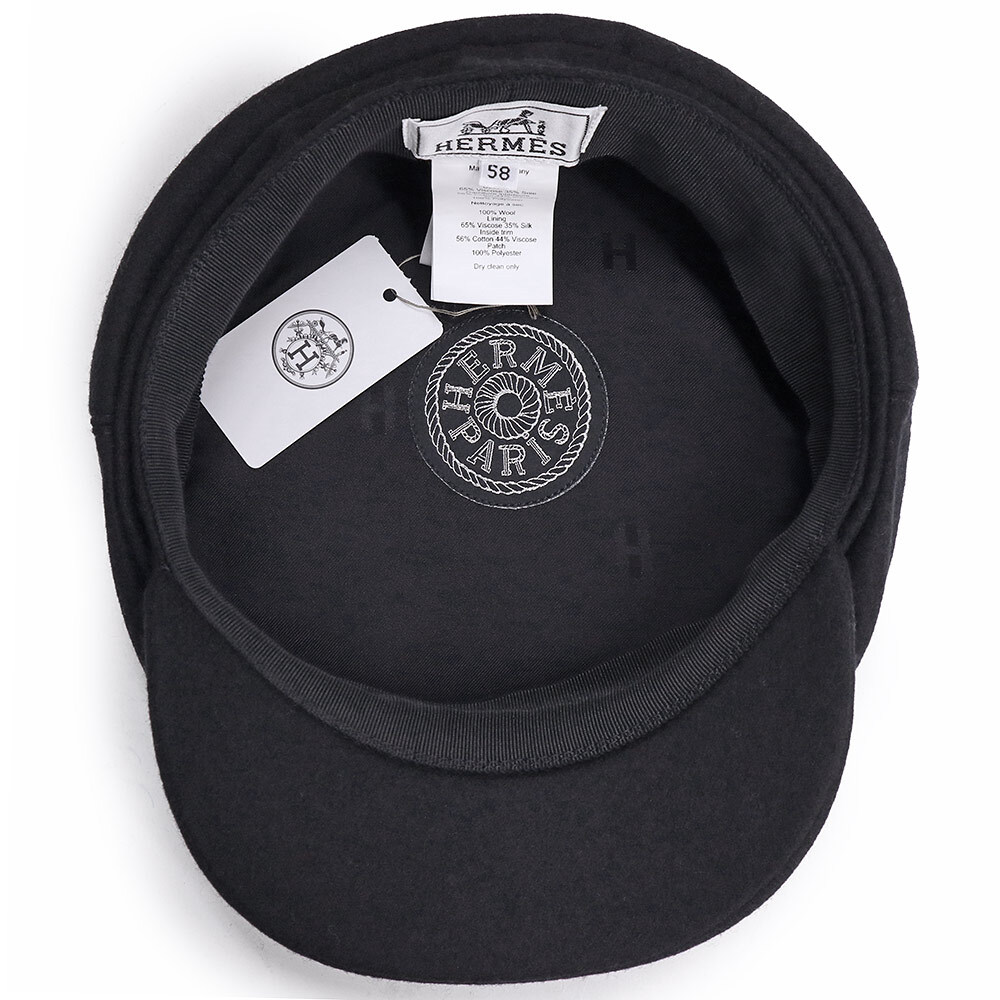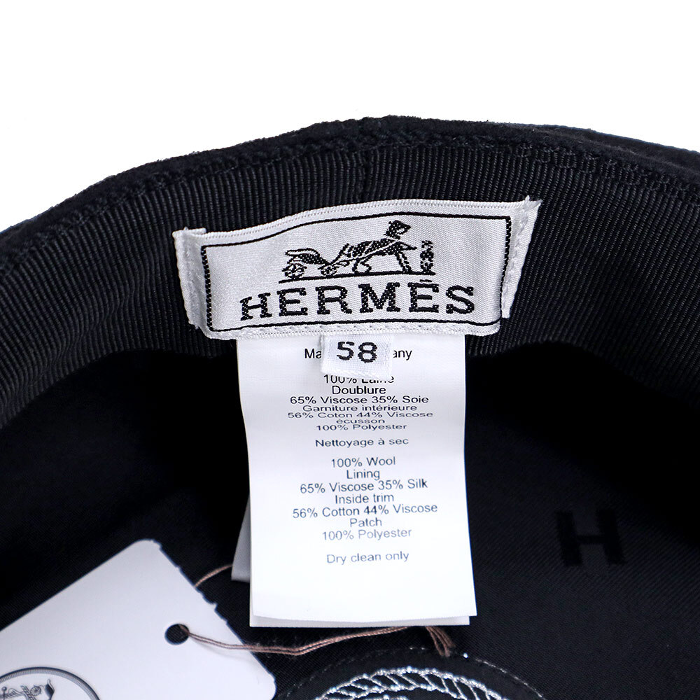(新品・未使用品)エルメス HERMES Dani ダニ キャスケット 帽子 キャップ #58 セリエボタン ウール100% ブラック 黒 シルバー金具 箱付