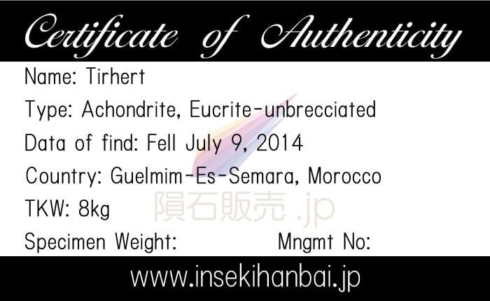 2014年7月9日午後9時30分頃にモロッコ南部の住民は北西から西の方向に移動する火球を目撃しました。その直後に複数のソニックブームを聞き最初の隕石は翌日にFoumElHisnとAssaを結ぶ道路の近くで回収されました。周辺の都市から多くの人々が石の捜索のために落下地域に向かいましたが日中の気温が50度もある中での捜索は困難を極めました。記録されている最大質量は約1300gでティルハート村の近くで回収され総質量は8~10kgと推定されています。