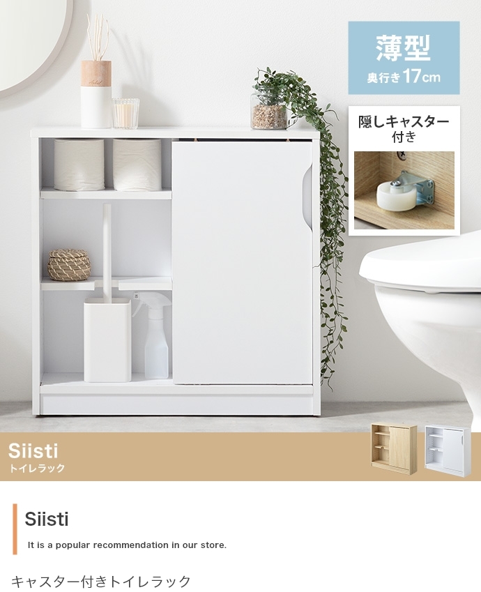 狭いトイレでも生活感を隠して収納できるキャスター付きトイレラック。