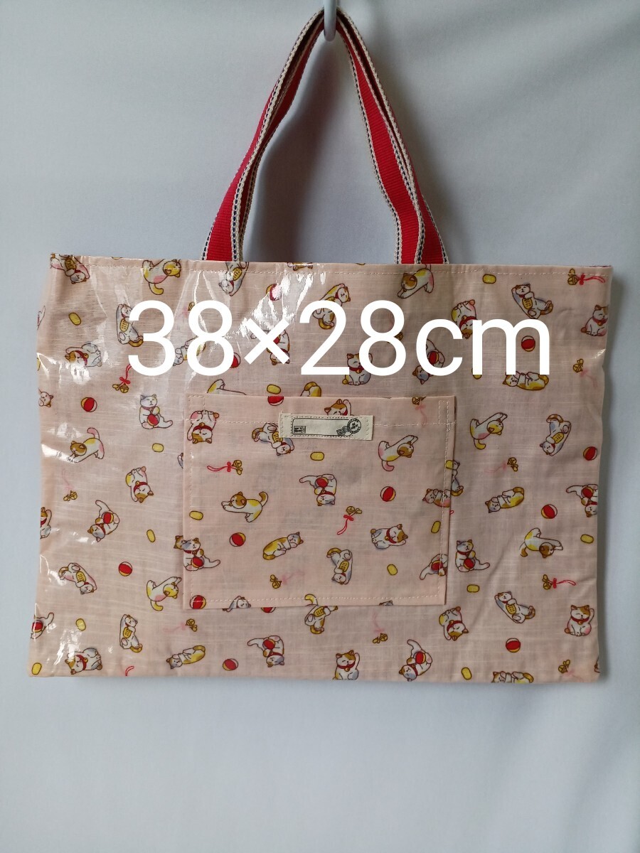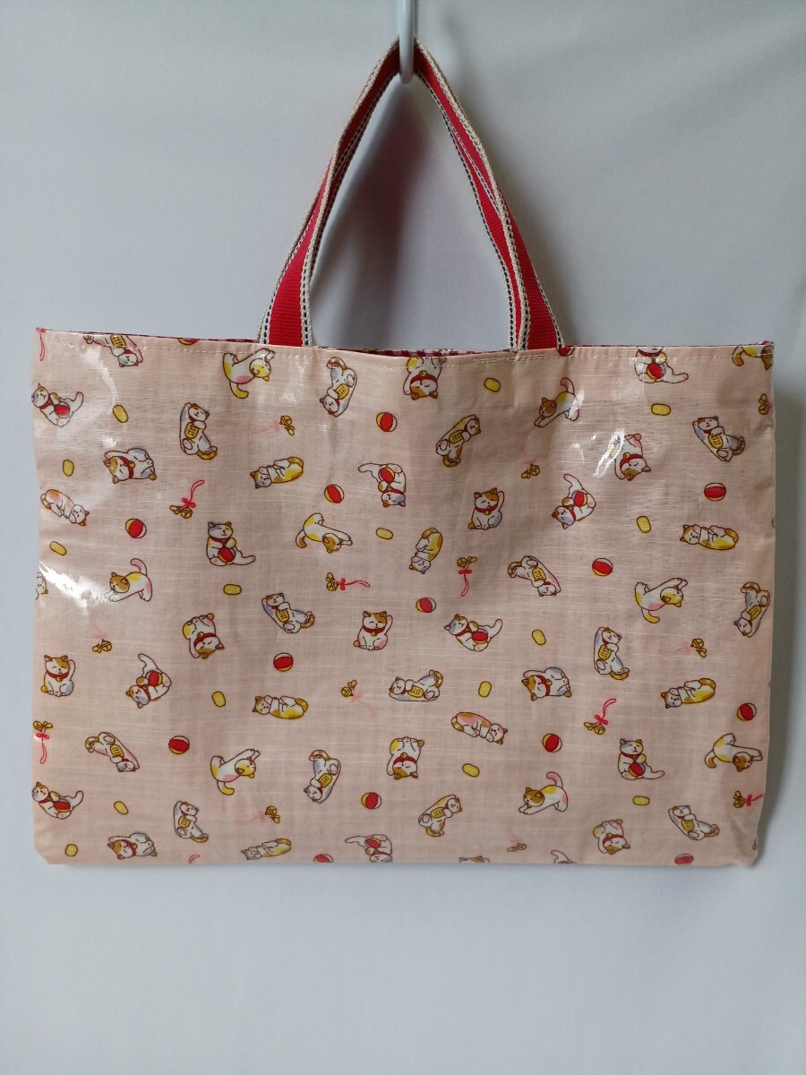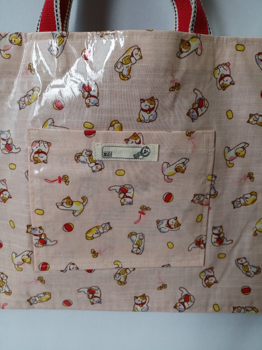 【素材】表側→ラミネート生地(薄いピンク地に招きネコ柄)