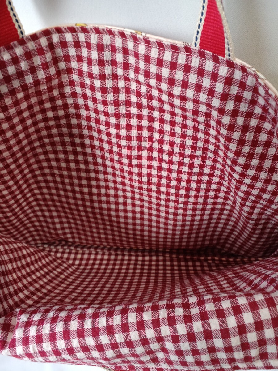 ラミネート生地の手提げかばん(ハンドメイド)です。