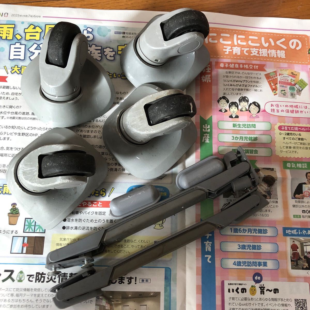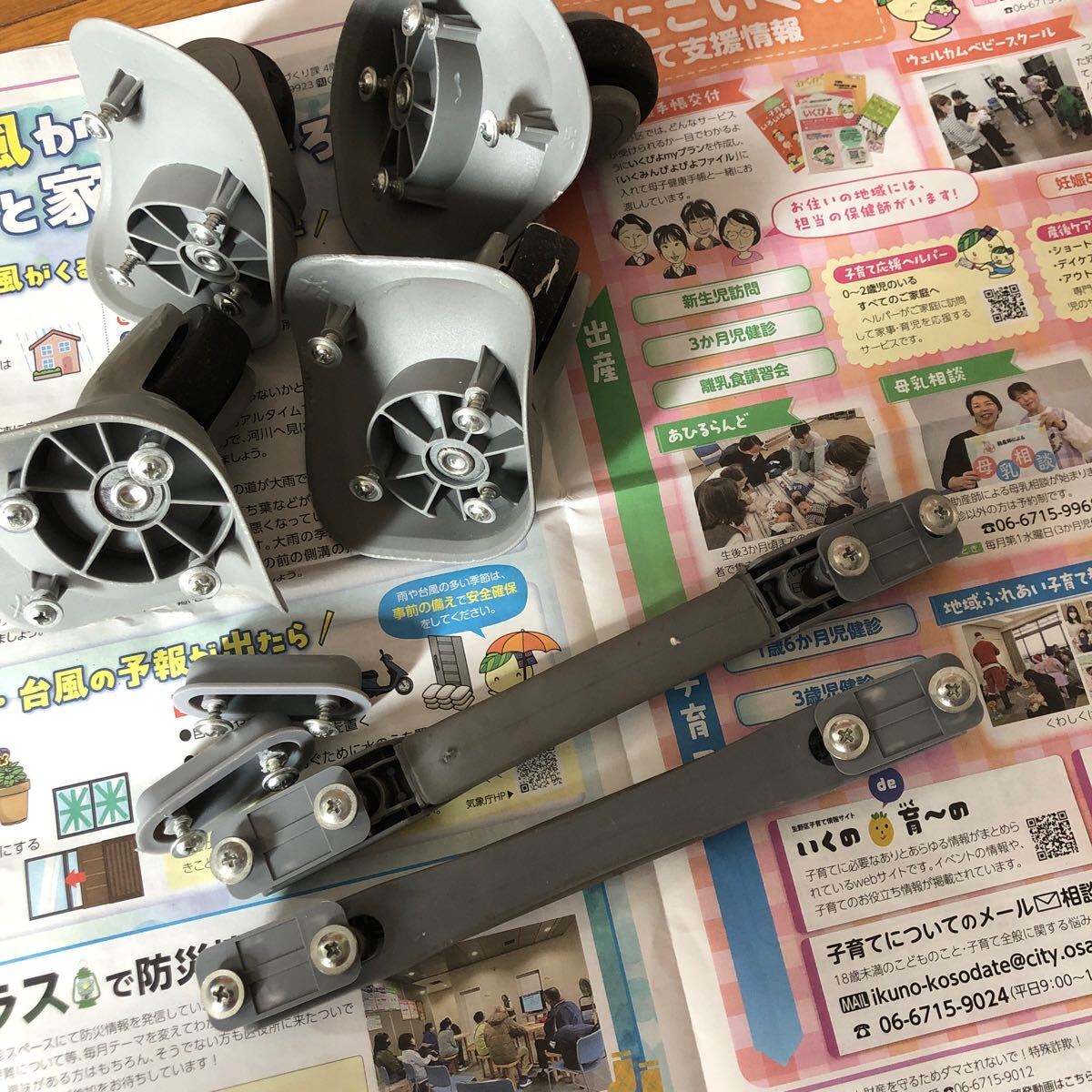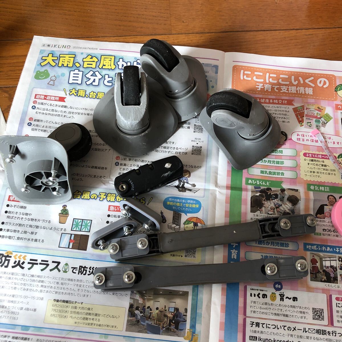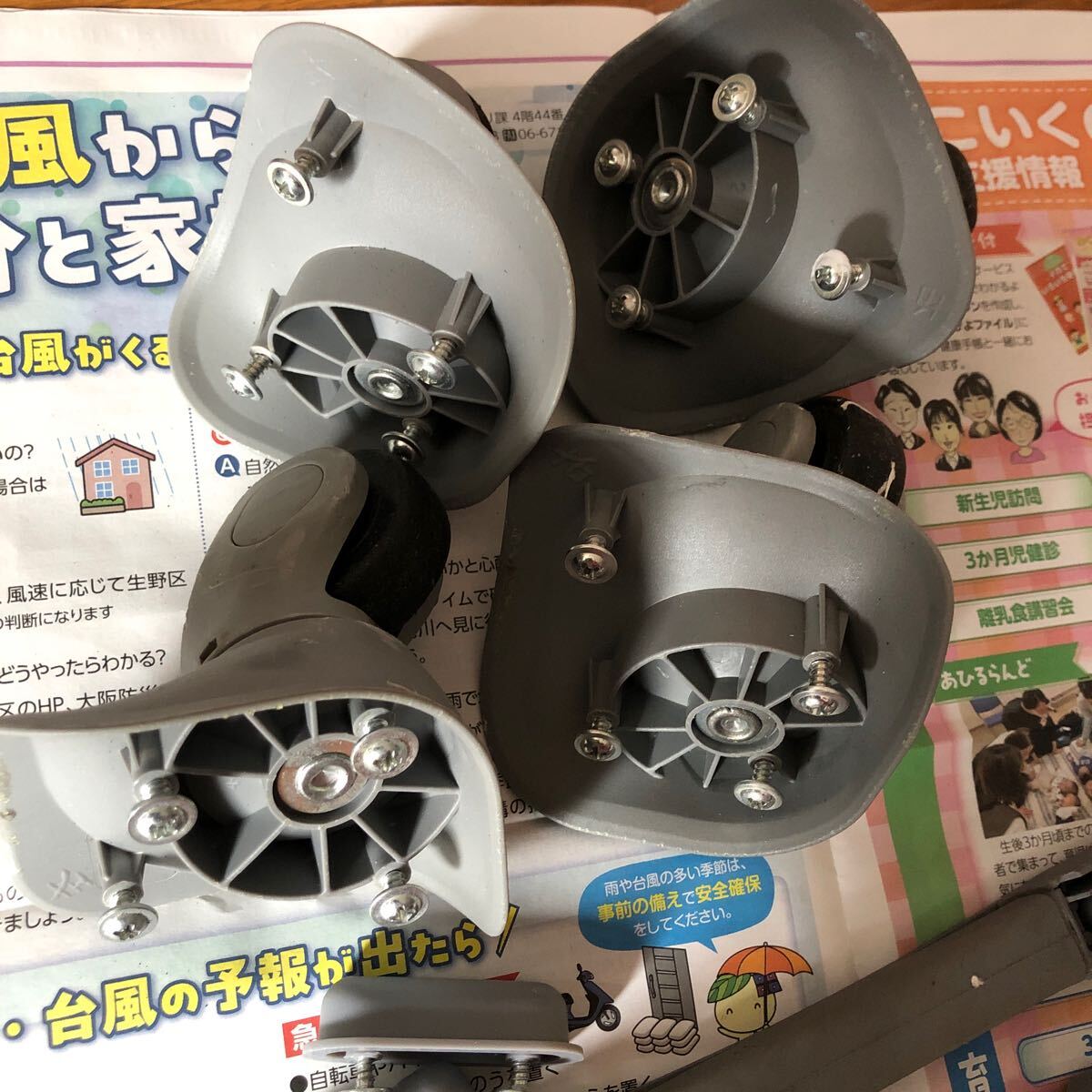 スーツケース交換用 車輪 4つ、ハンドル2個、TSA002鍵1個小さい部品付き、交換修理 車輌直径約5cm 中古品 送料600円 ネジ付き