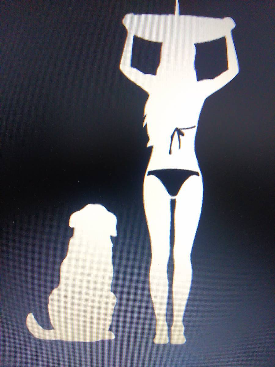 H30cm サーファーガール&わんこ ラブラドール・レトリバー カッティング ステッカー/サーフィン サーフボード 愛犬 ハワイ 文字入れ可
