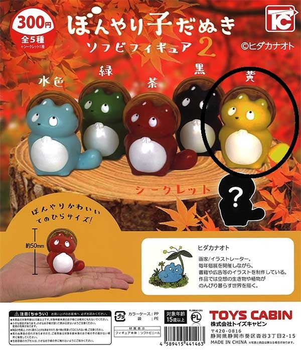 ぼんやり子だぬき ソフビフィギュア2 黄。