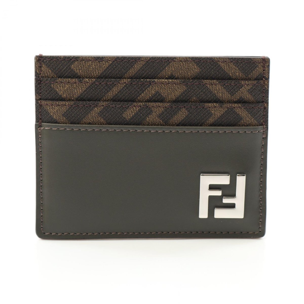 フェンディ FFロゴ ブランドオフ FENDI レザー カードケース カーフ/キャンバス メンズ