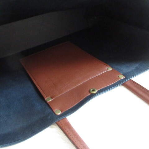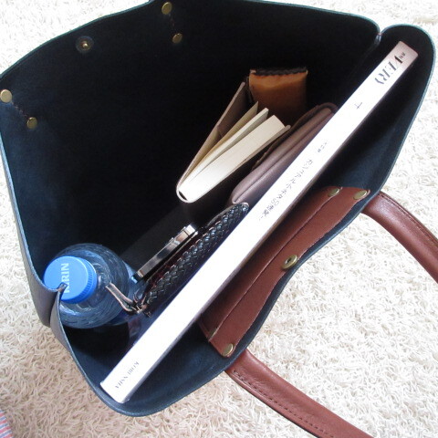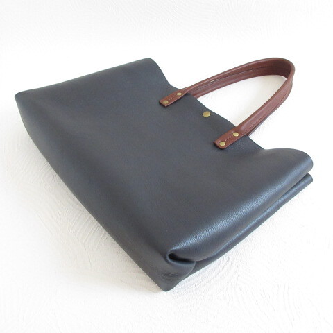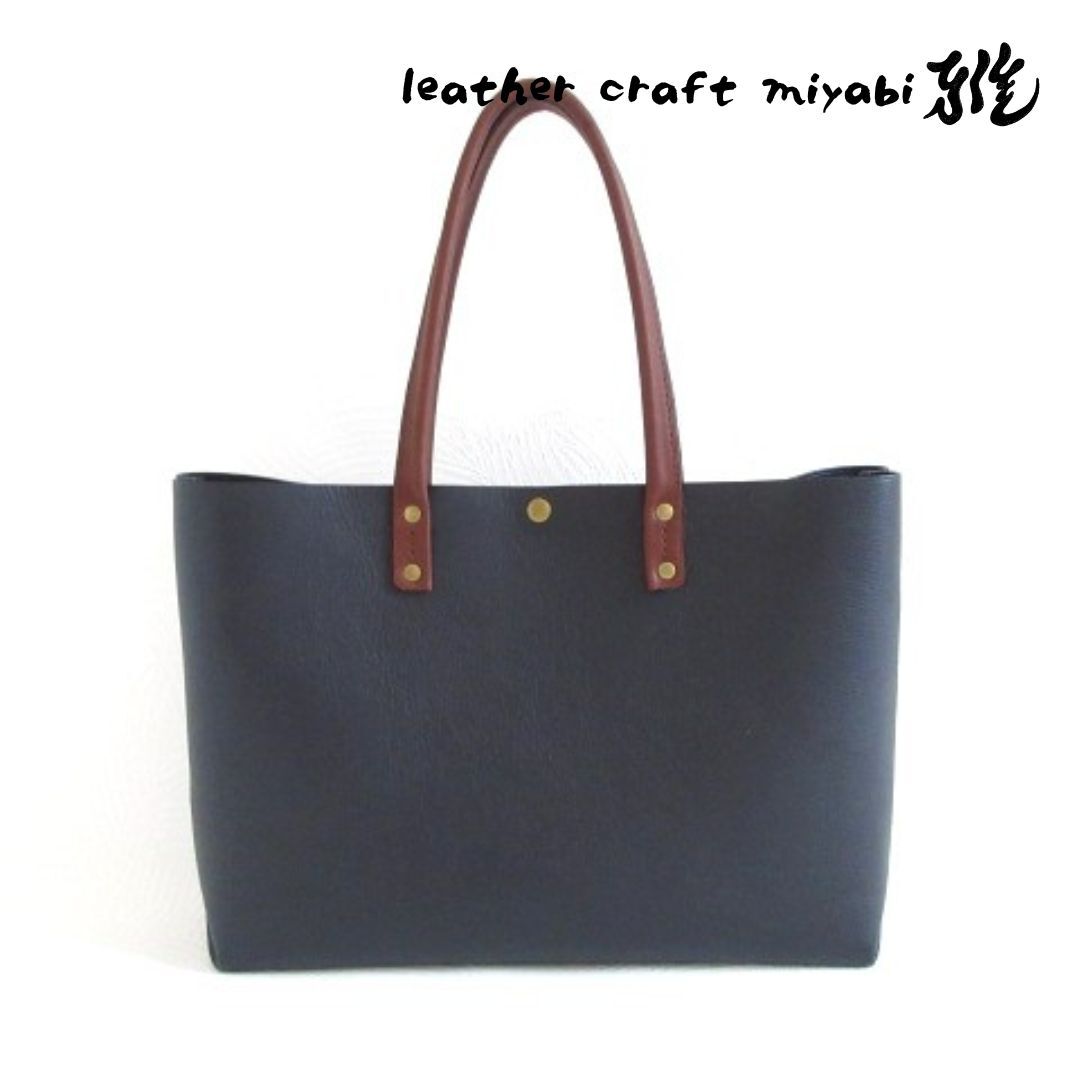 【L.C. 雅】ワイドなA4対応♪《牛革》三角マチヨコ型トートバック・シュリンクレザー・ネイビー・0527