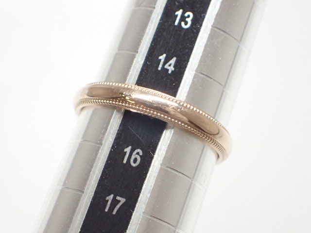 NIWAKA 俄 750 ピンクゴールド リング ことほぎ ミルタイプ 15号 この機会に是非どうぞ♪ ※ブランドオークションにて購入したお品です。 購入後、大手買取店にて鑑定済みです。 安心してご購入下さい。 :サイズ: リング幅 約3mm (素人採寸です。ご参考程度になさって下さい。) 商品はお写真の物で全てです。 画像はデジカメ撮影となります。 忠実な再現を心がけておりますが、若干お色が異なる場合が御座いますので、ご了承ください。 〇比較的綺麗な状態ですが、使用品につき、スレキズや小傷等の使用感が御座います為、店舗販売の様な完品をお求めの方、商品状態に神経質な方のご入札はご遠慮ください。 〇日付とイニシャル入りの為、お安い価格での出品です。 |