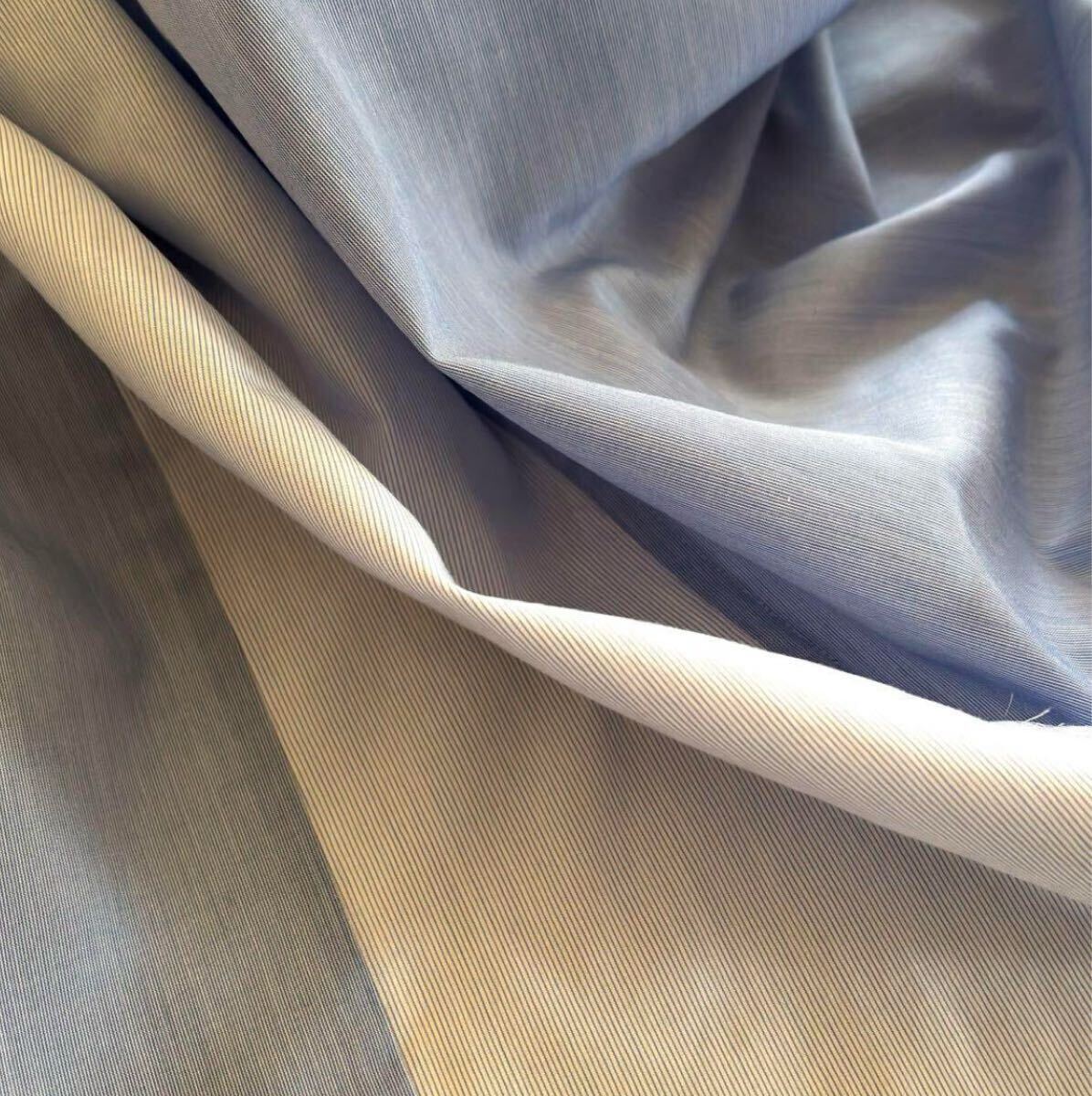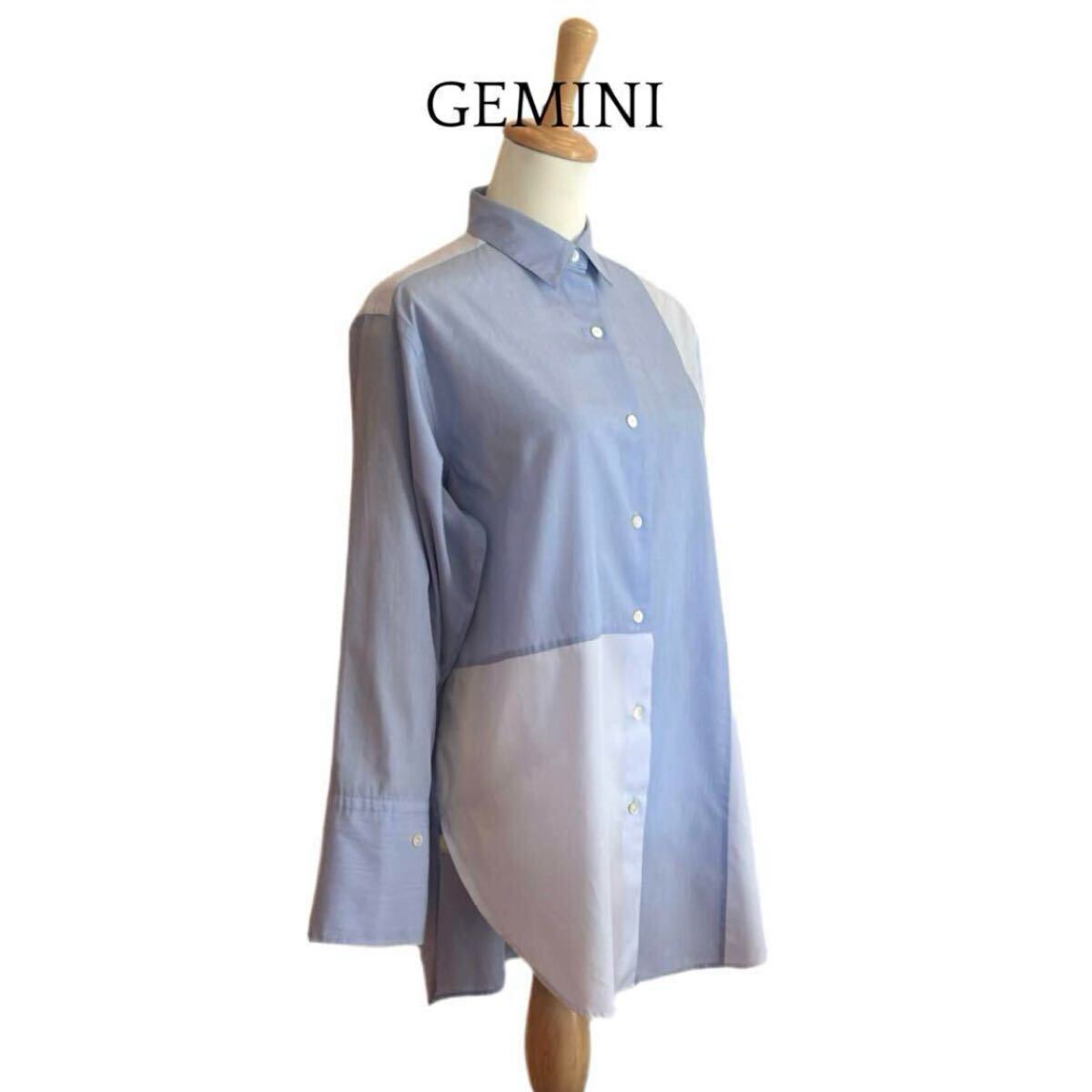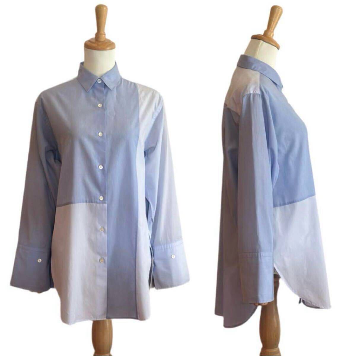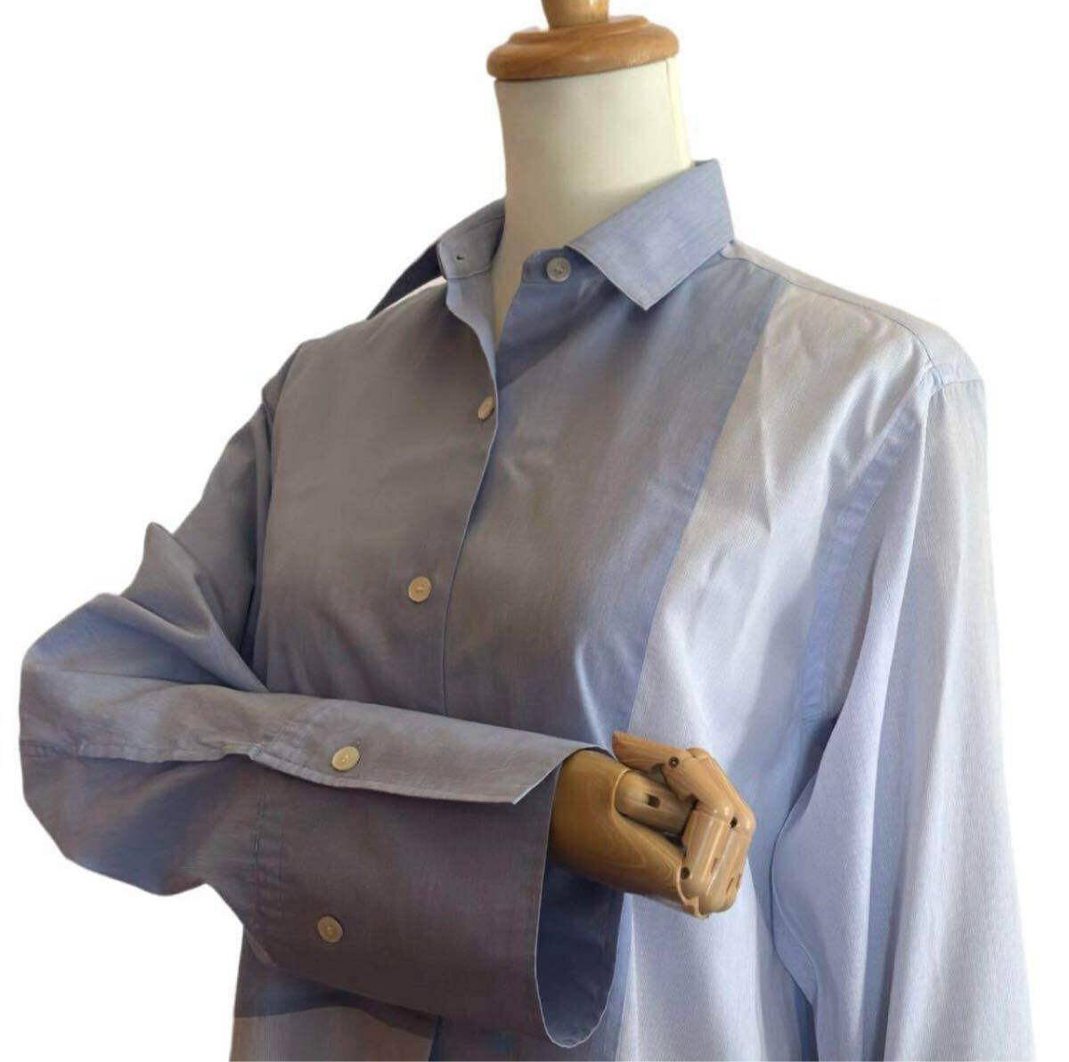 上品なストライプ柄に加え、アシンメトリーな切り替えデザインがスタイリッシュな印象を与えます。